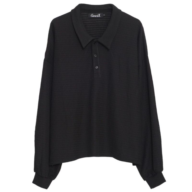 襟付きのデザインがきちんと感もあり、トップスとしてもジャケットのインナーとしても相性◎