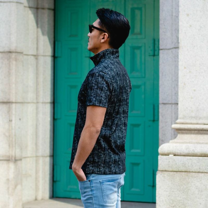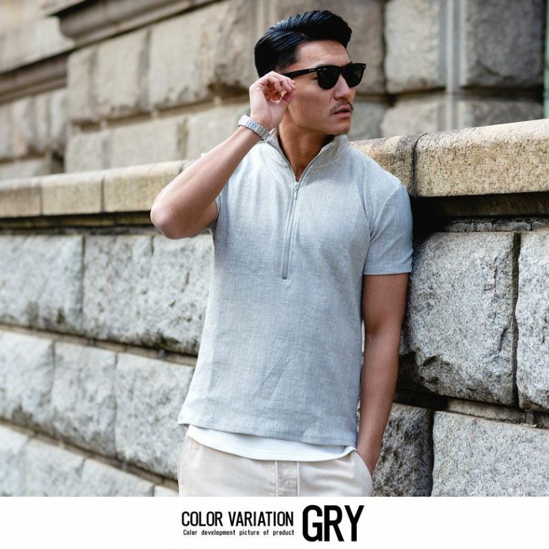 モザイクジャガード柄の生地感が贅沢な雰囲気を演出してくれる半袖ポロシャツ。