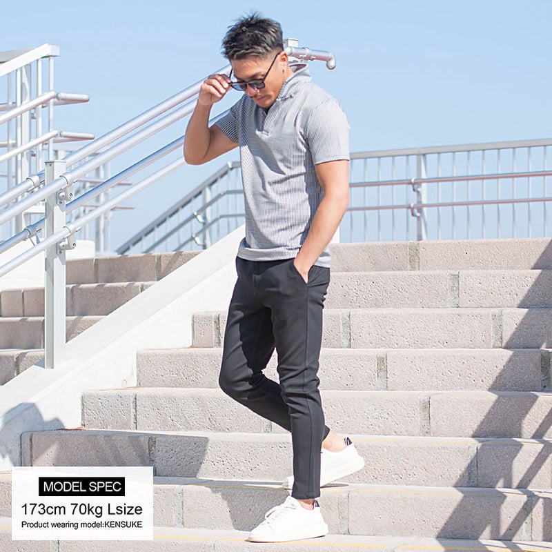 細身でスタイリッシュなシルエットですが伸縮性もあるので快適な着心地。
