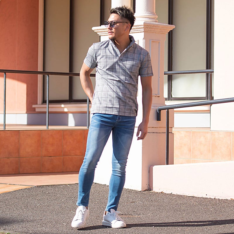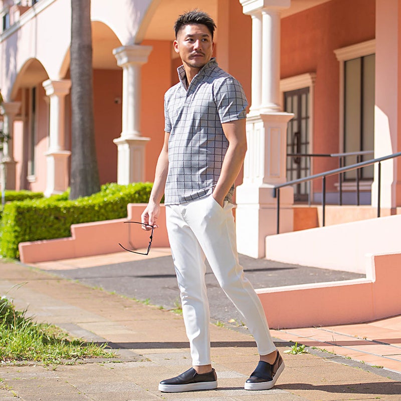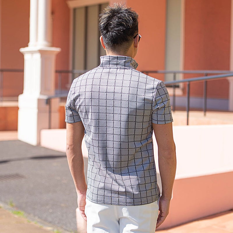 3パターンのチェック総柄ボディの上品かつスタイリッシュな印象なポロシャツ。