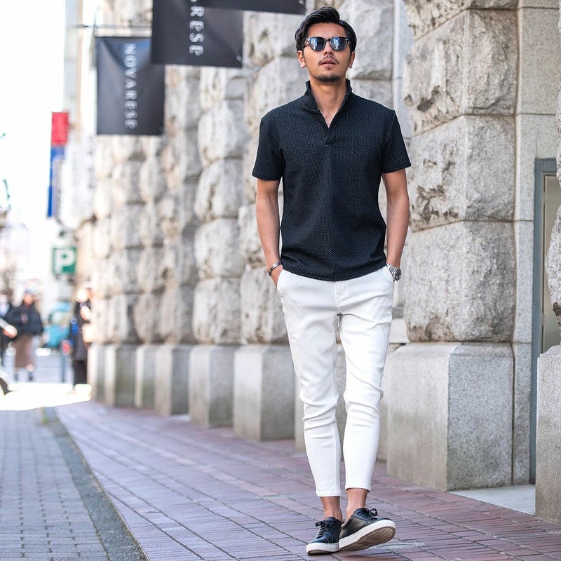 程よく開いたスキッパータイプですっきりとした色気のある首元に魅せてくれます。