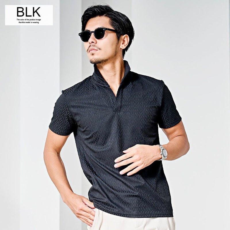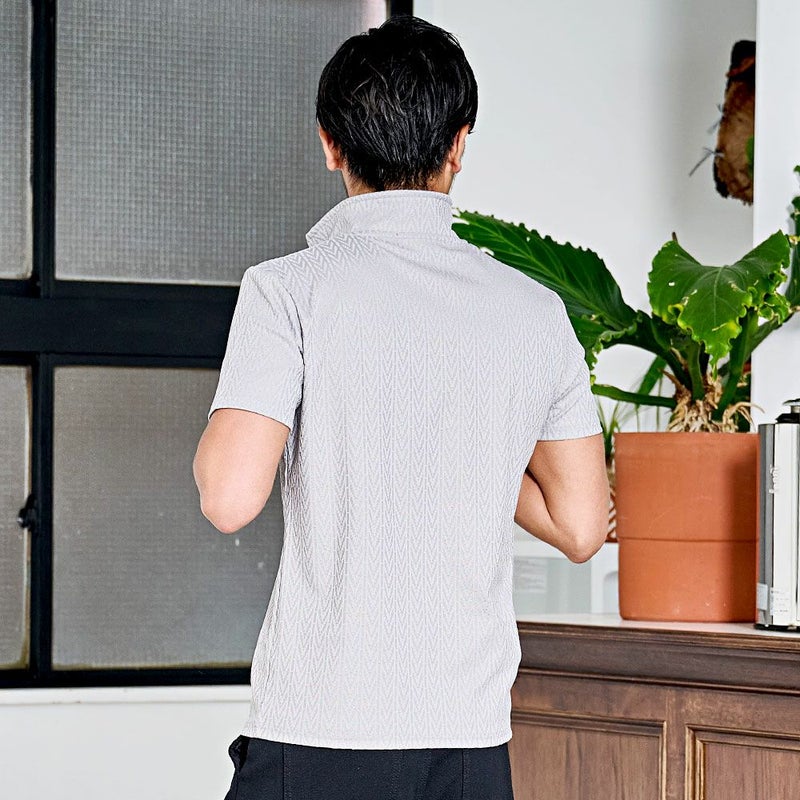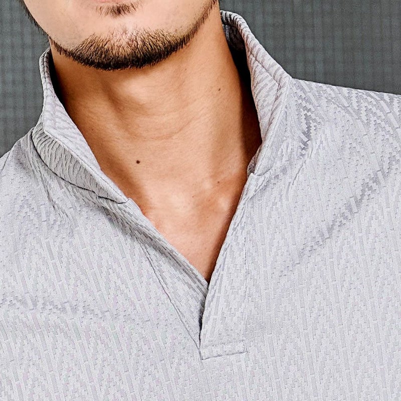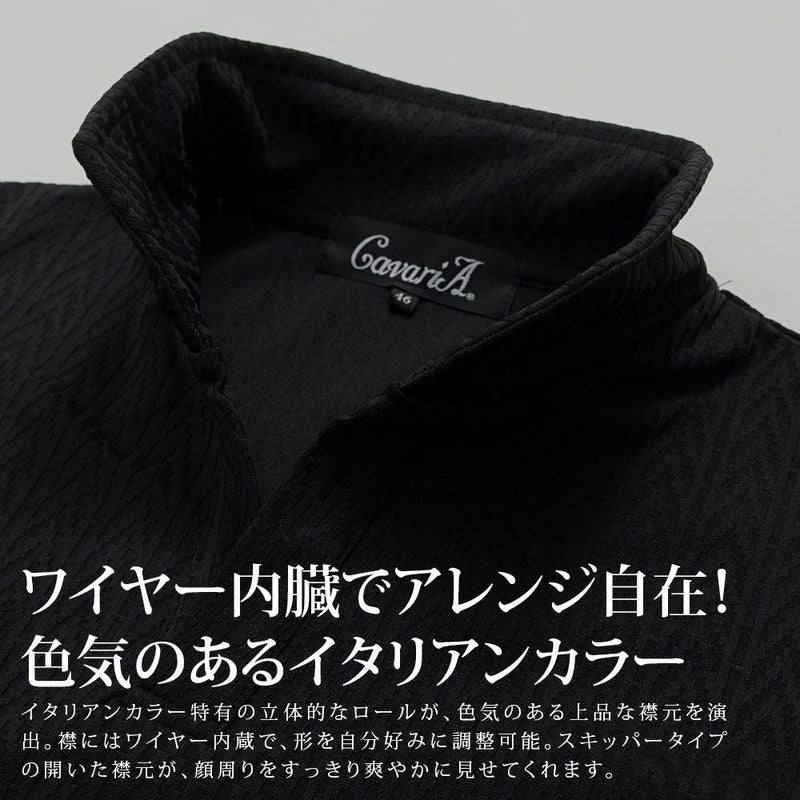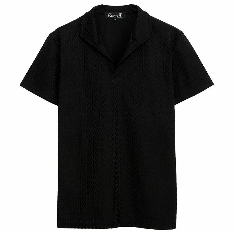 ポロシャツ メンズ おしゃれ 半袖 ヘリンボーン柄 イタリアンカラー ホリゾンタルカラー スキッパーポロシャツ ストレッチ 伸縮 細身 スリム タイト CavariA(キャバリア)デジタルヘリンボーン半袖ポロシャツ/全3色