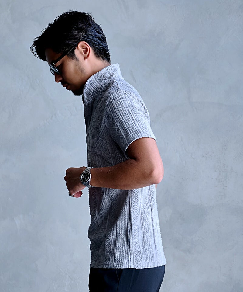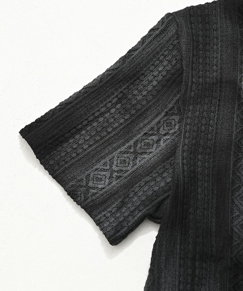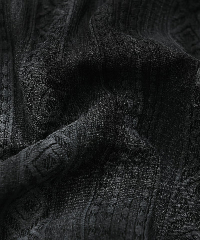 さらに、立体感のある格子×ケーブル編みがその加工をより際立たせ、光の当たり方で表情が変わる奥行きある仕上がりに。