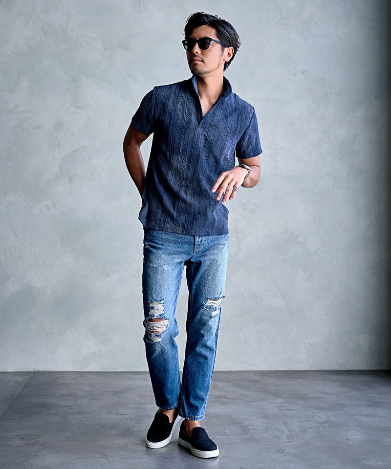 BITTER STORE(ビターストア)にCavariA【キャバリア】汚し加工格子ケーブルイタリアンカラー半袖ポロシャツが入荷しました。