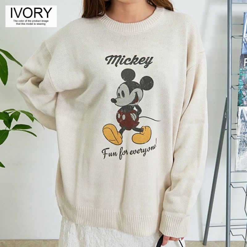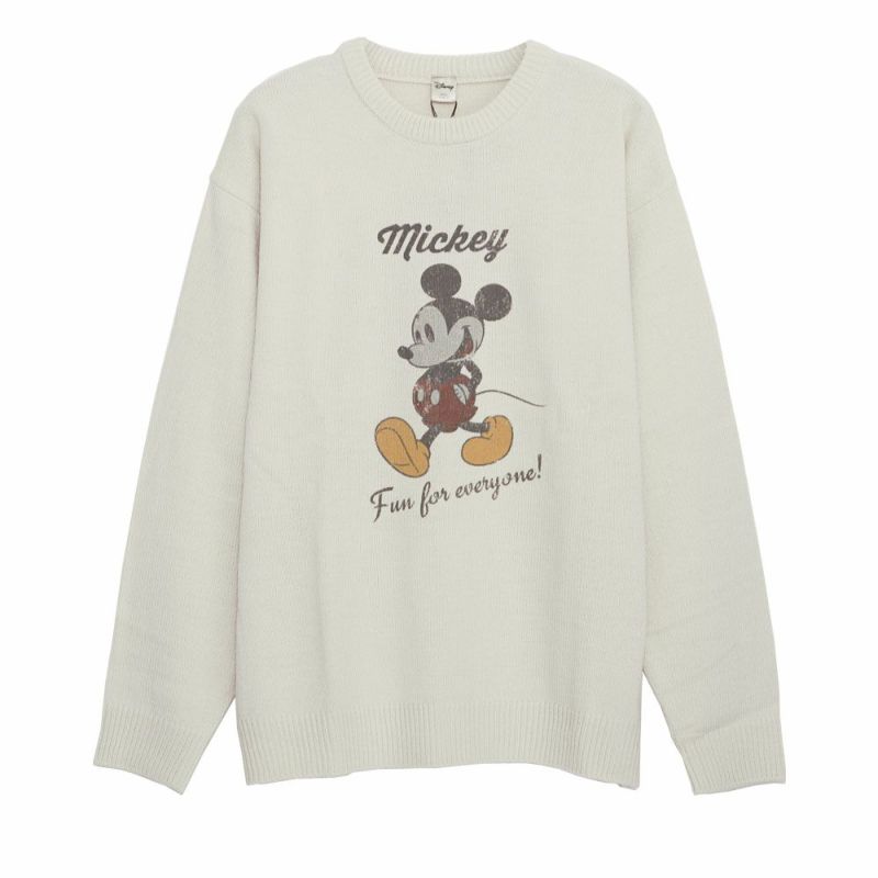 ゆるっと着られる大人カジュアルニット。人気キャラクター「ミッキー」のプリントを加工風にあしらい、ヴィンテージライクな雰囲気に仕上げました。 DISNEY(ディズニー)MICKY 加工風PRINT長袖ニットソー(MIC)/全4色
