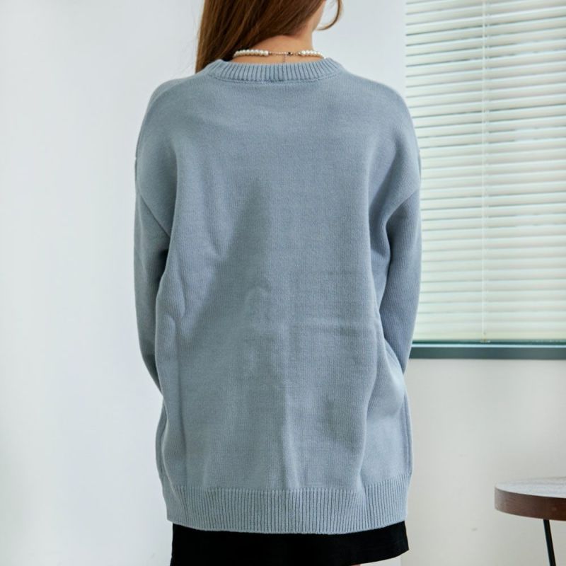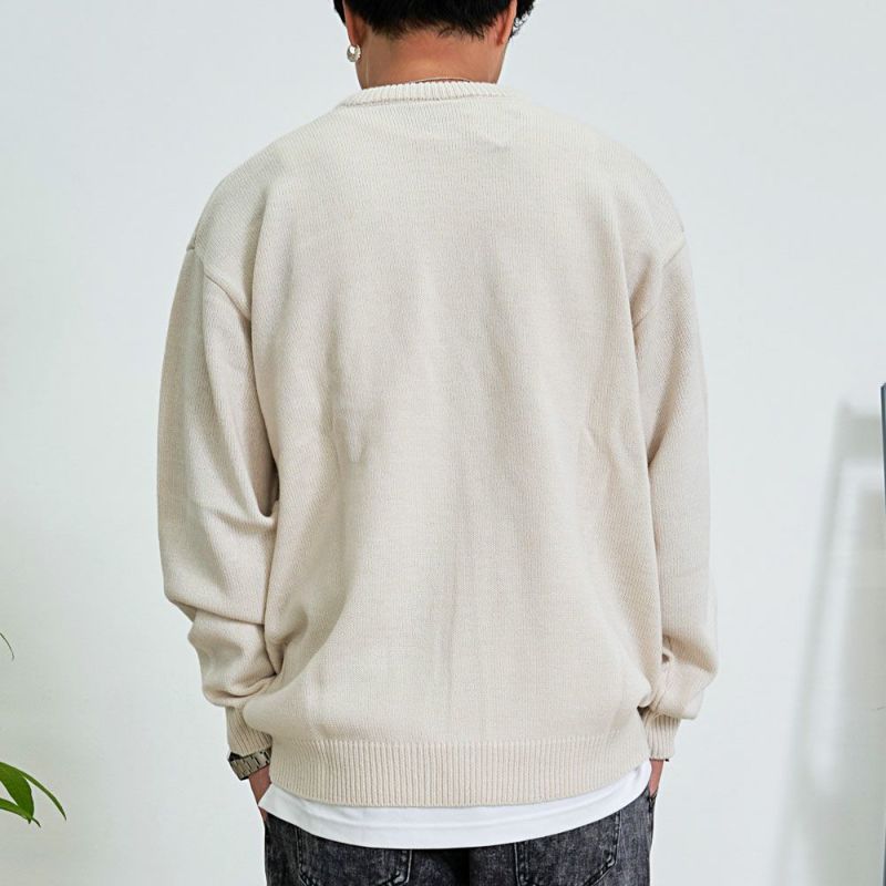 シンプルなクルーネックで着回しやすく、デニムやスカートなど様々なボトムスと好相性。
