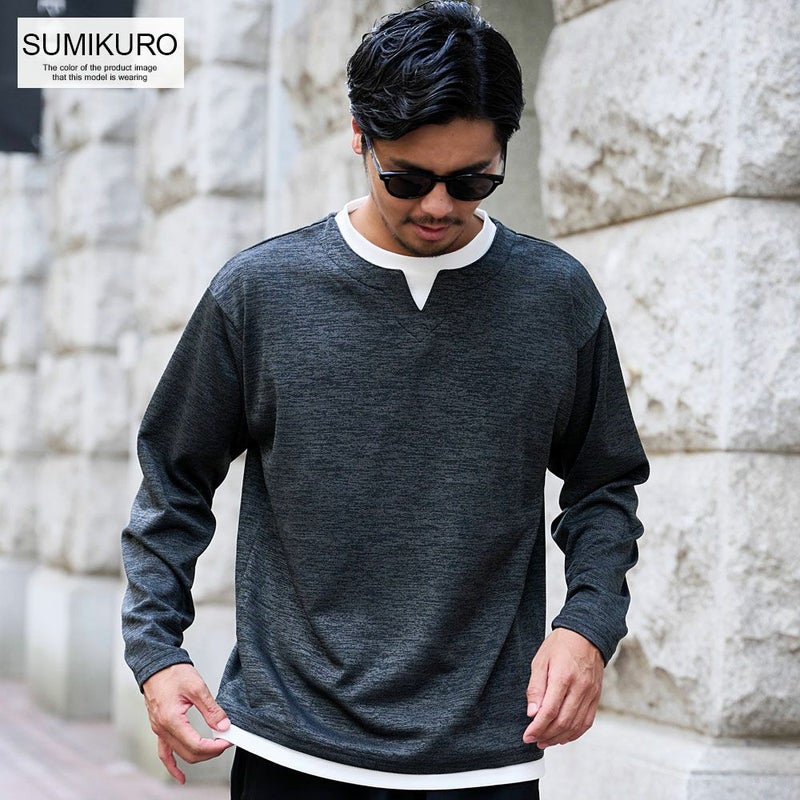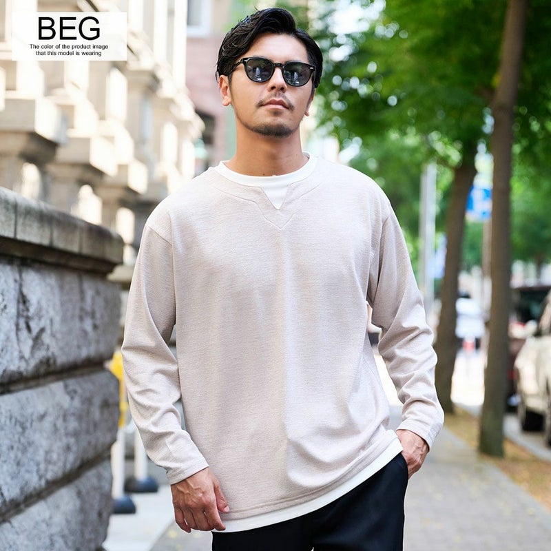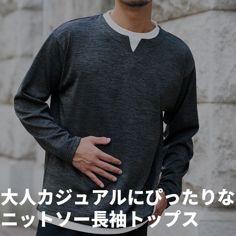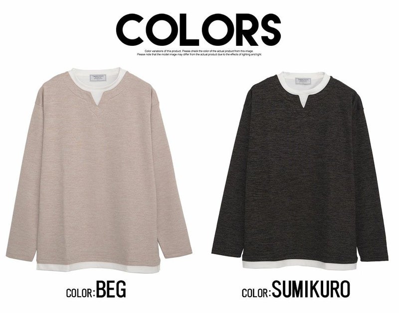 大人カジュアルにぴったりな ニットソー長袖トップス。柔らかなニットのような風合いと、カットソーの軽やかな着心地を両立したアイテム。 Bitter select(ビターセレクト)キーネックフェイクレイヤード長袖ニットソー/全2色