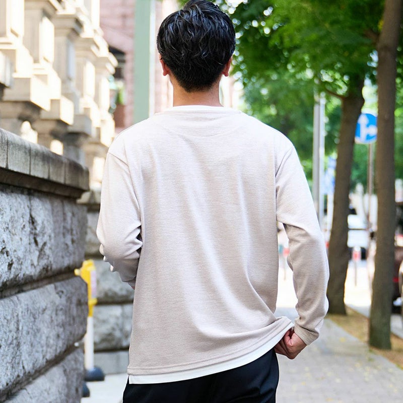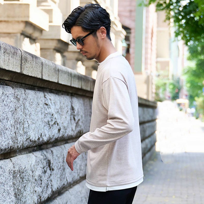 大人カジュアルにぴったりな長袖トップスで、ニットのような柔らかな風合いと、カットソーならではの軽やかな着心地を兼ね備えた一枚です。