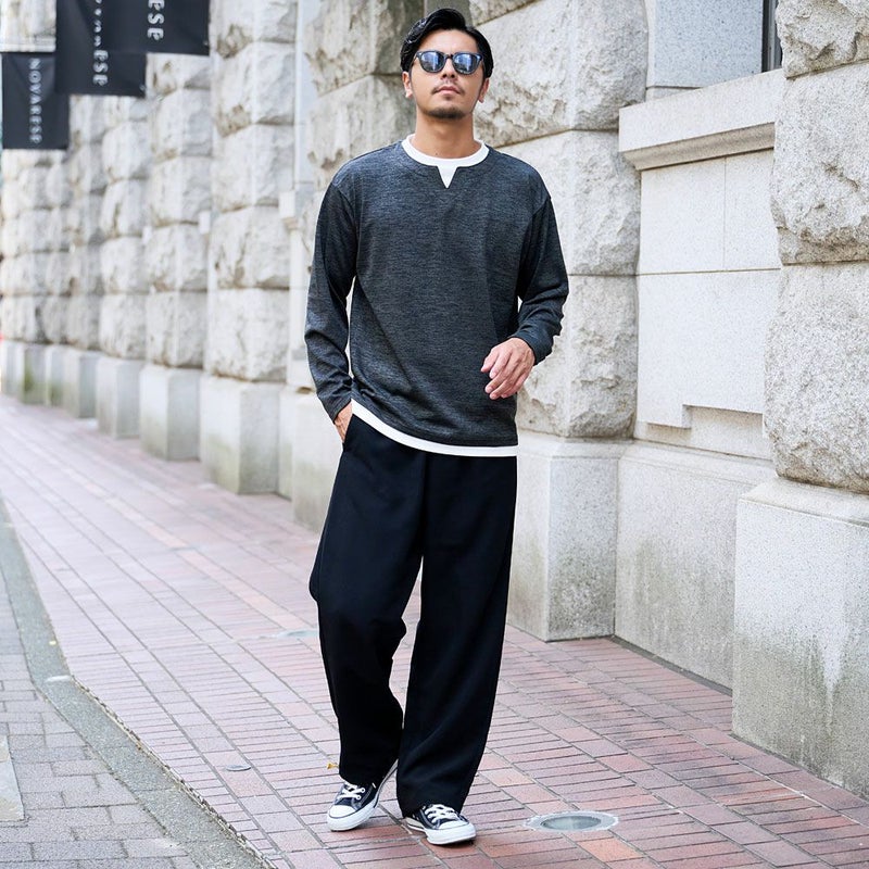 1枚で着ても存在感があり、シャツやジャケット、アウターのインナーとしても相性抜群。