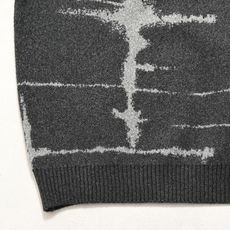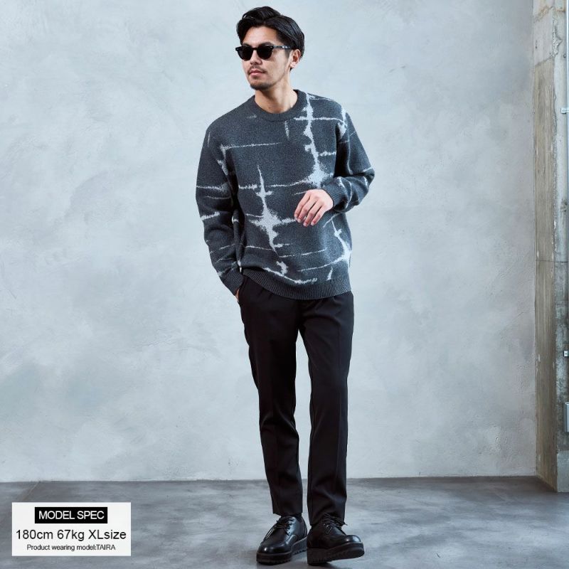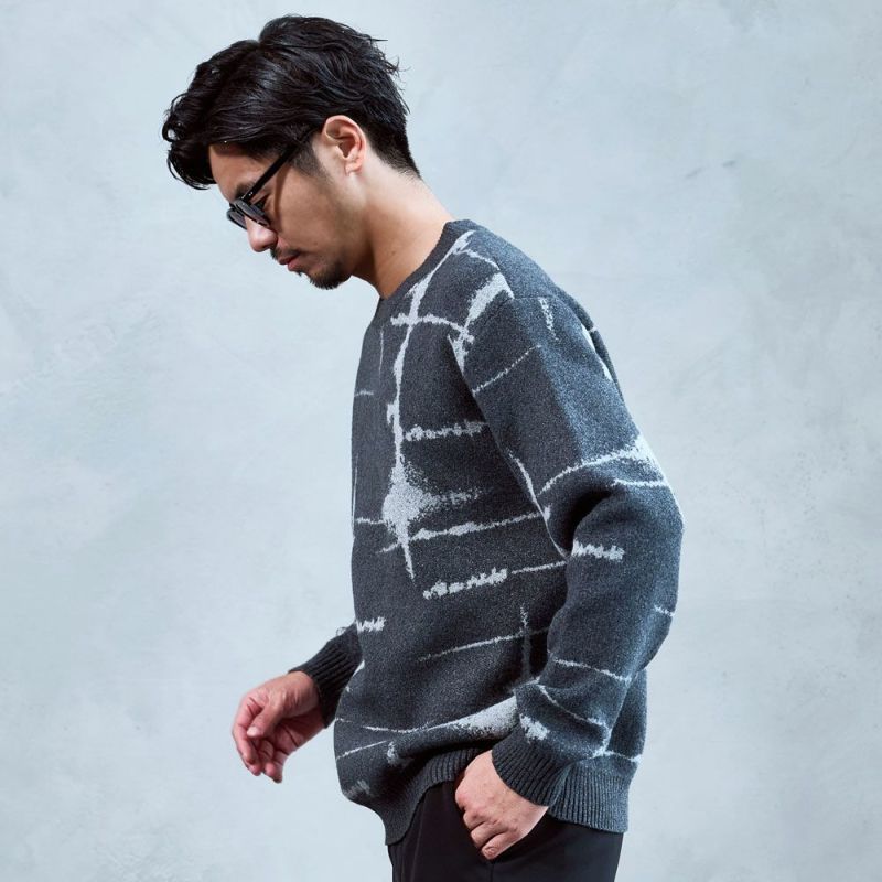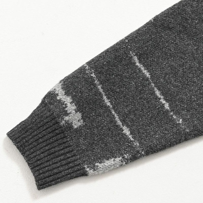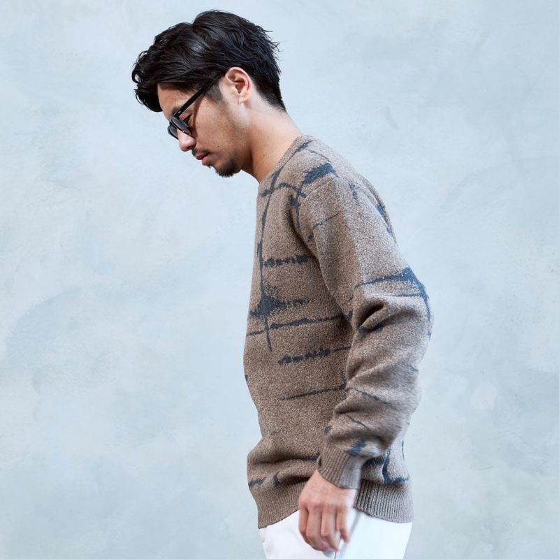 アート作品のようなかすれタッチをベースに仕上げた、表情豊かな抽象柄ニット。