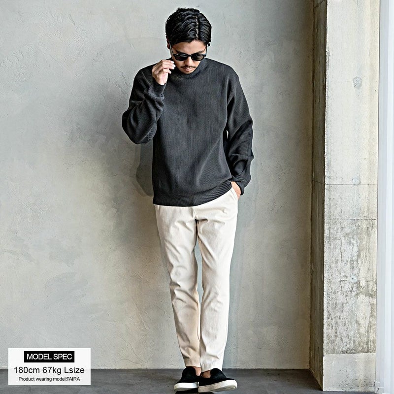 シーズンを通して長く使え、ワードローブの定番として一着持っておきたいハイネックニットです。