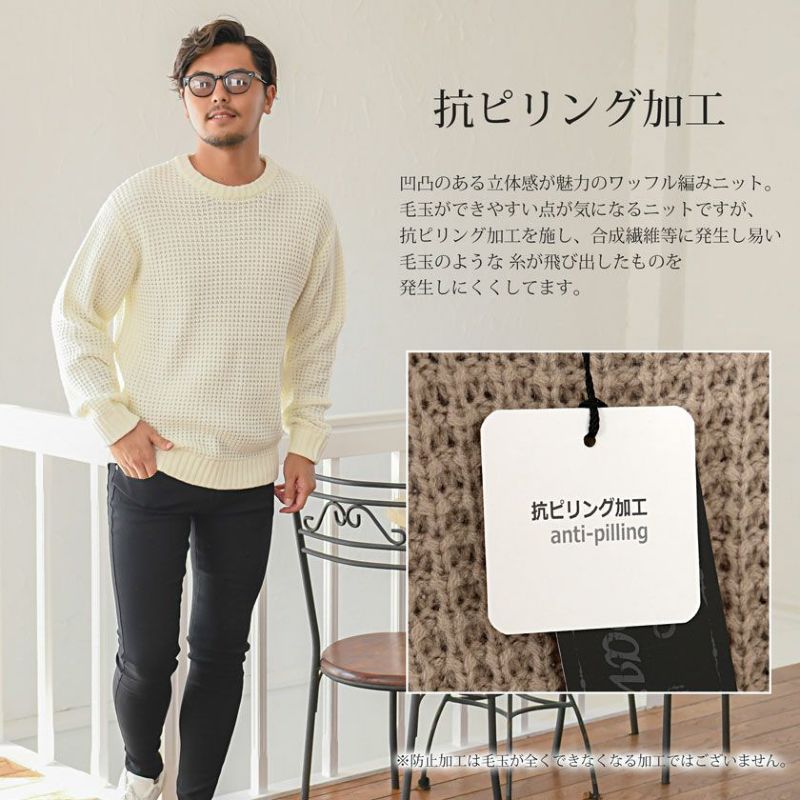 ニット メンズ セーター ワッフルニット 大きいサイズ ブランド 大人 おしゃれ ワッフル編み シンプル 無地 クルーネック M L XL くすみカラー 暖かい あったか 秋 冬 秋冬 CavariA(キャバリア)ヘヴィーウェイトクルーネック長袖ビッグワッフルニットソー/全8色