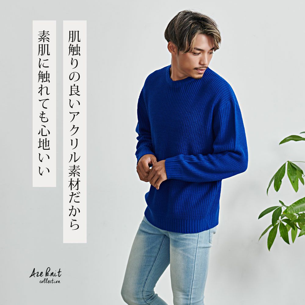 凹凸感と立体感が魅力の畦(あぜ)編みで、ざっくりとした編地が特徴のボリュームニット。