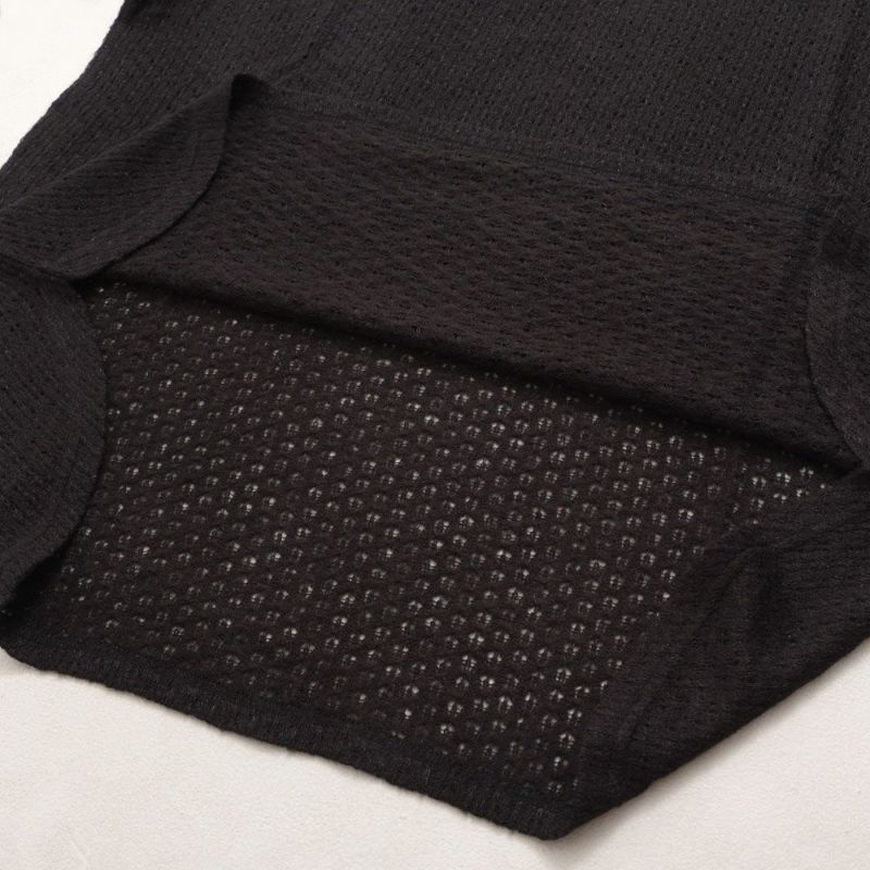程よい透け感のあるざっくりした編み地で、リラックスした印象を演出します。