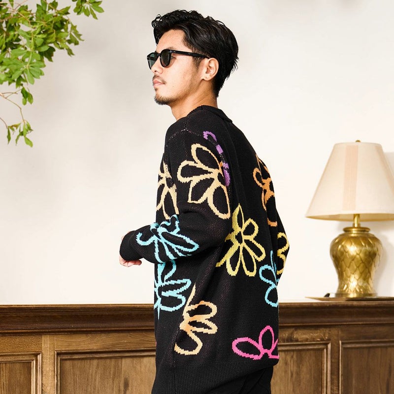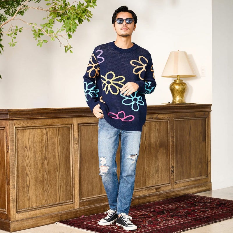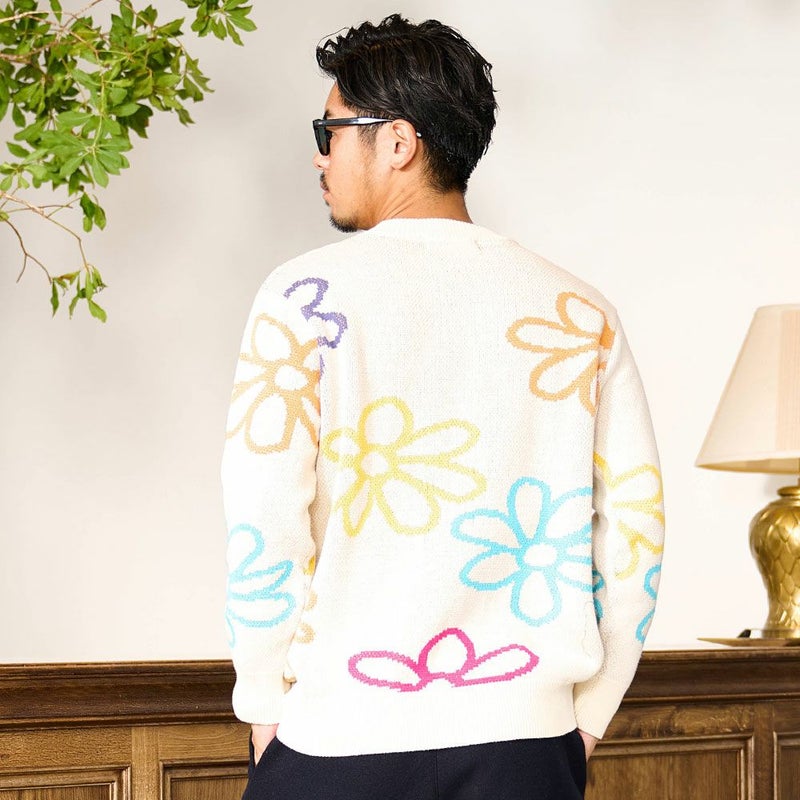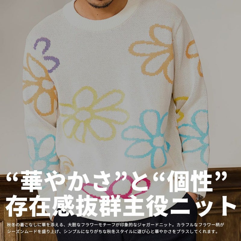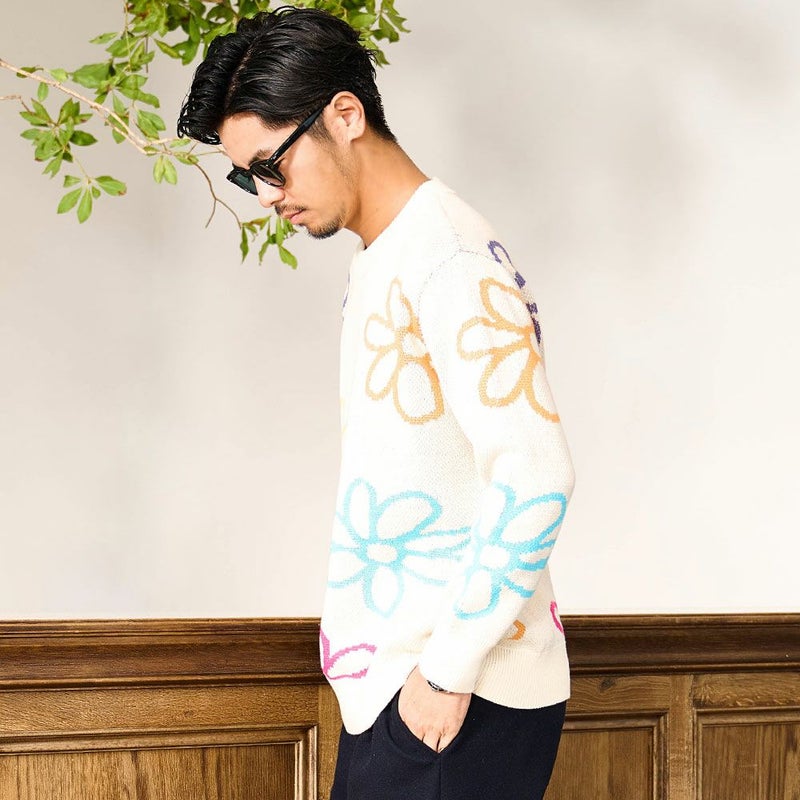 秋冬の着こなしに華を添える、大胆なフラワーモチーフが印象的なジャガードニット。