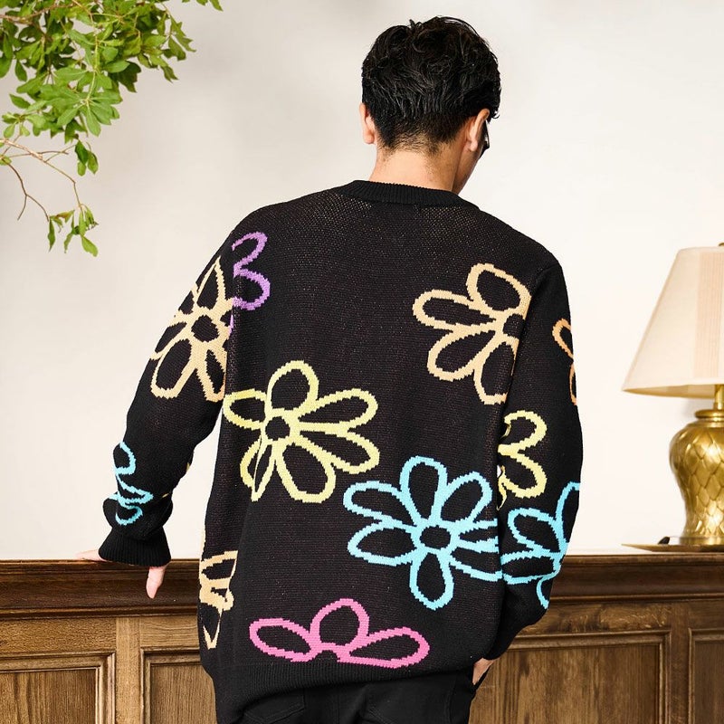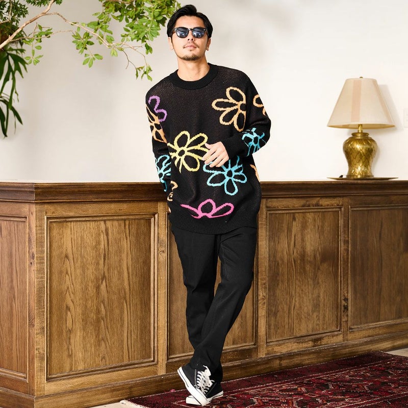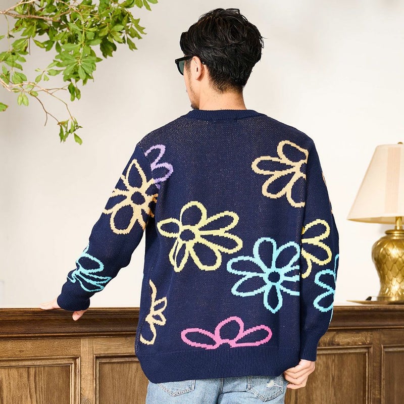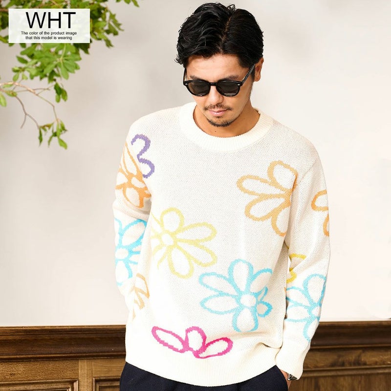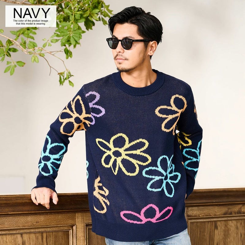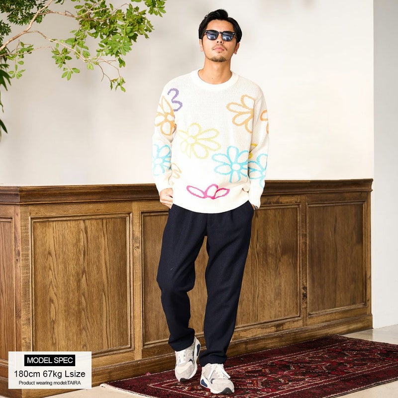 秋冬の着こなしに華を添える、大胆なフラワーモチーフが印象的なジャガードニット。