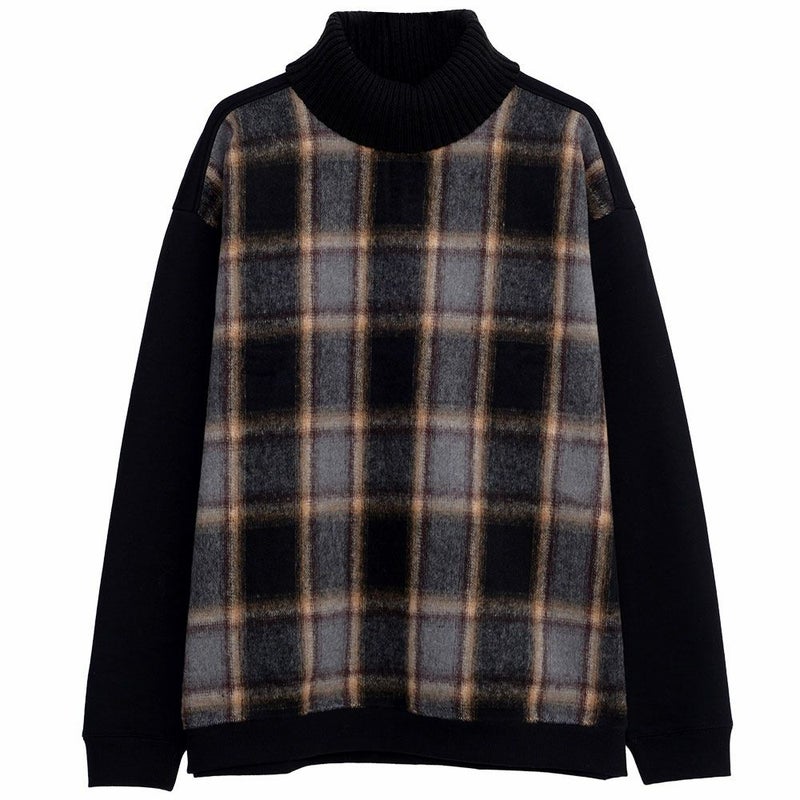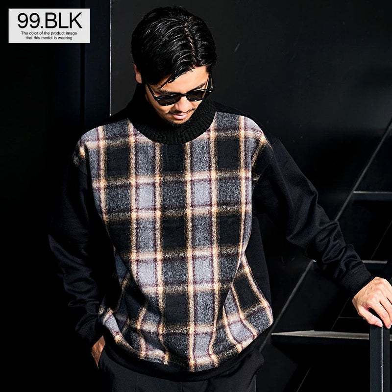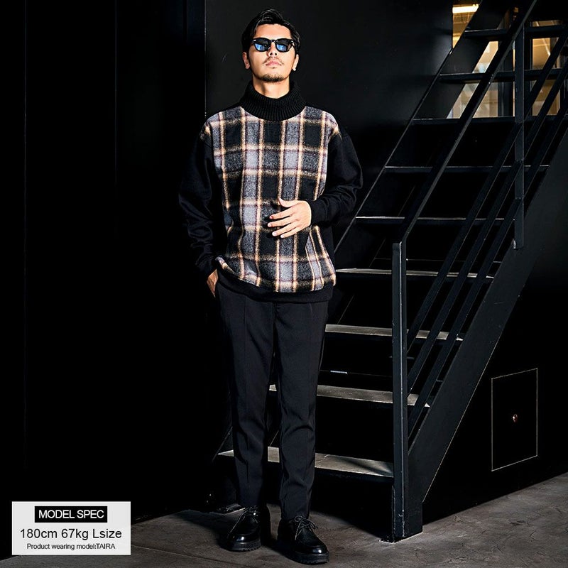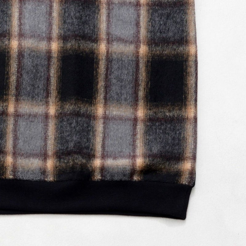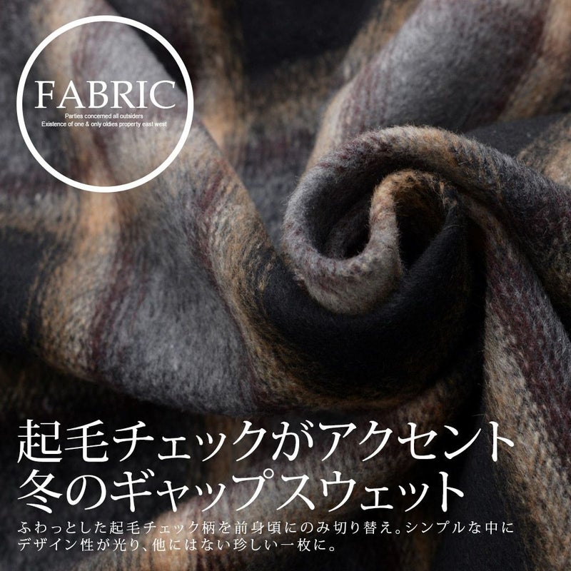 ふわっとした起毛チェック柄を前身頃にのみ切り替え。