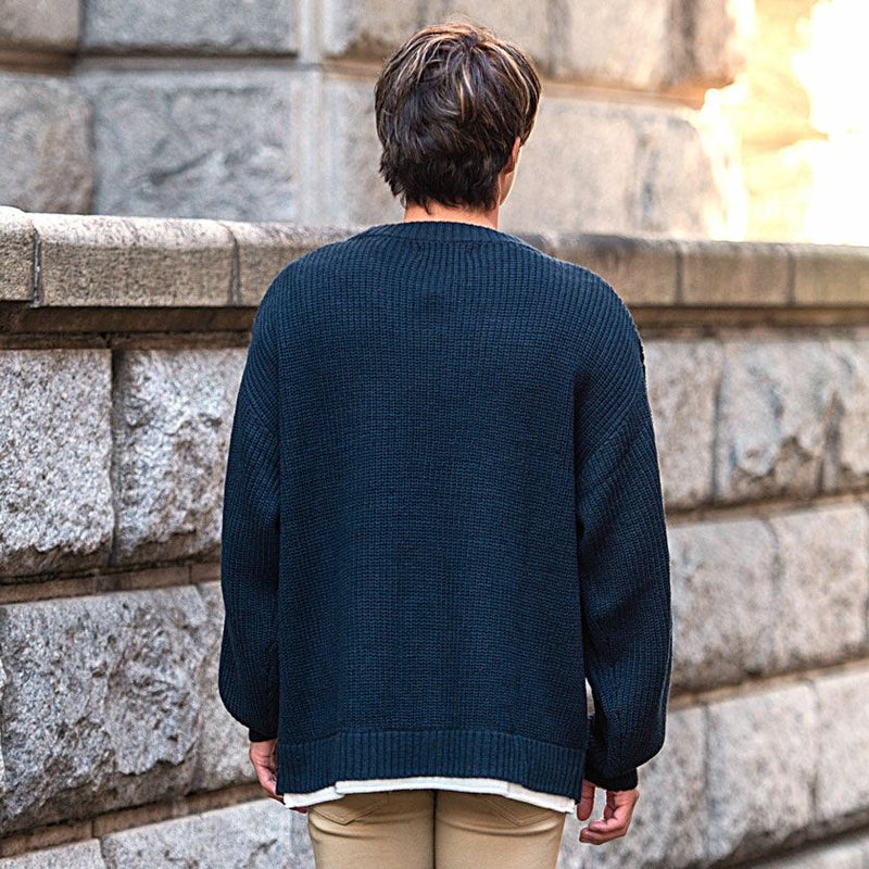 ニット メンズ セーター 大きいサイズ ブランド 大人 ビッグシルエット オーバーサイズ レイヤード クルーネック キレイめ 暖か 防寒 あったか レイヤード 重ね着 ニットソー CavariA(キャバリア)7G方畦ビッグシルエットクルーネック長袖レイヤードニット/全9色
