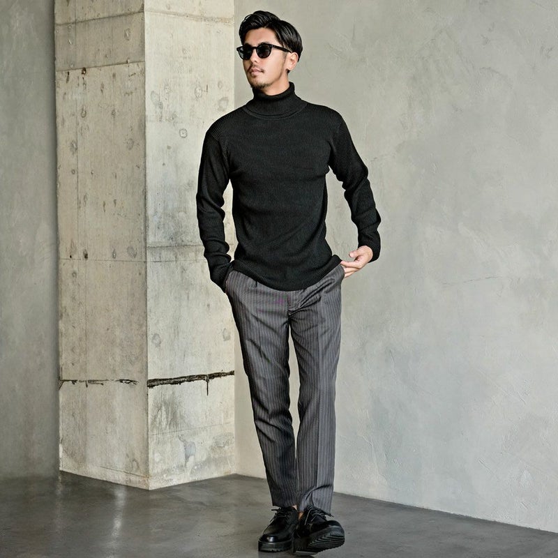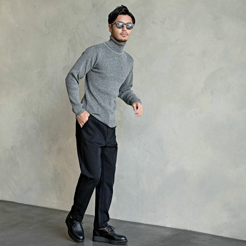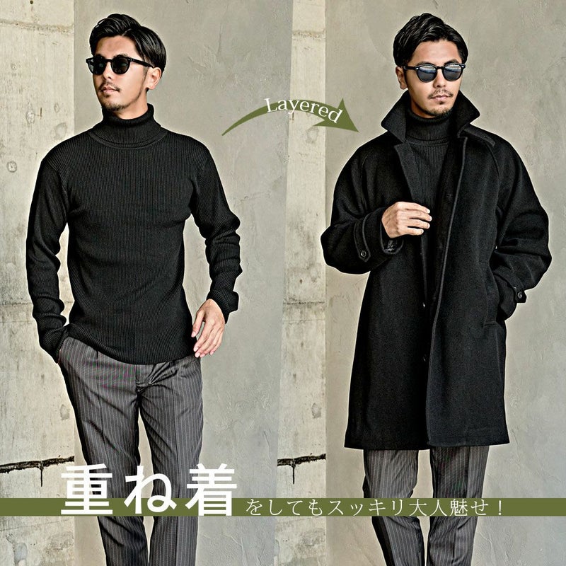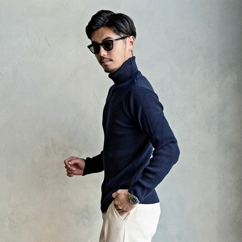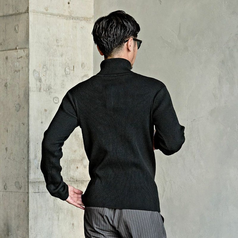 すっきりとしたラインが大人の魅力を引き立て、ジャケットやチェスターコート、ブルゾンなど幅広いアウターと相性抜群の万能タートルニットです。