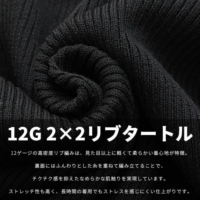 12ゲージの高密度リブ編みは、見た目以上に軽くて柔らかい着心地が特徴。