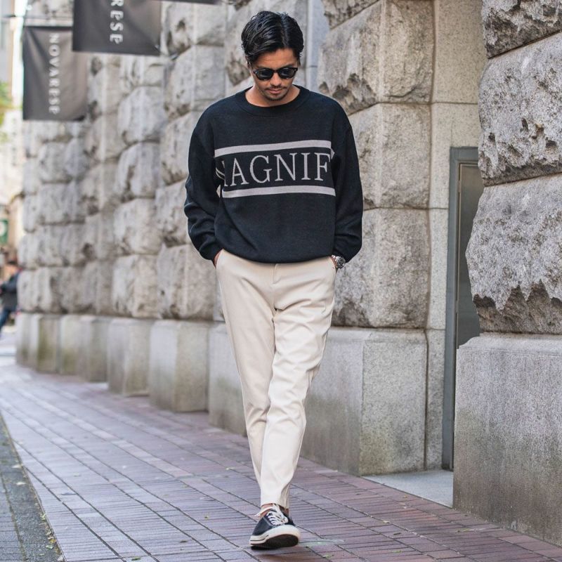 ボトムスはスラックスやフレアパンツと合わせて上品に仕上げたり、カーゴパンツやデニムと組み合わせてカジュアルに仕上げたりと、さまざまなスタイルを楽しむことができます。