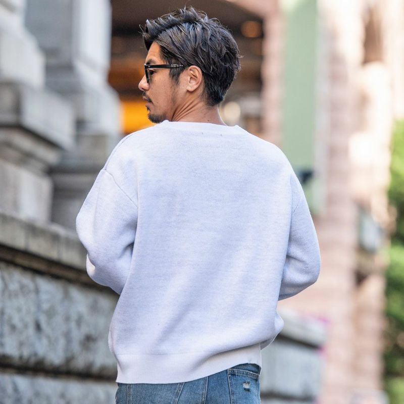 スタンダードなクルーネックデザインは、1枚での着用はもちろん、シャツやタートルネックとのレイヤードスタイルにもぴったり。