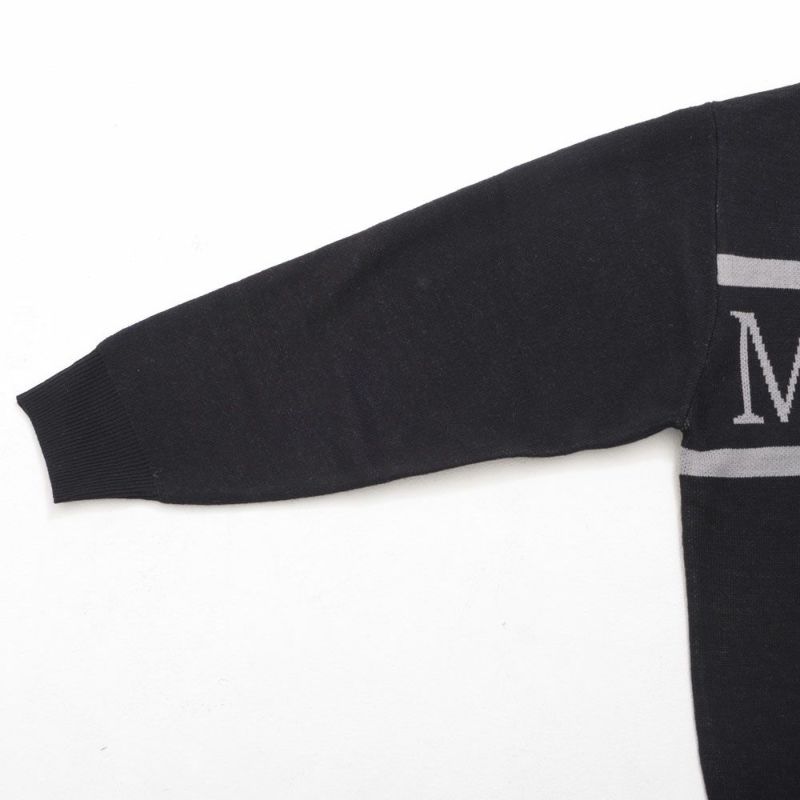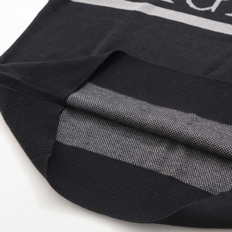 フロントにあしらわれたジャガード編みのロゴデザインは、立体感がありインナーとしても映えるポイント。