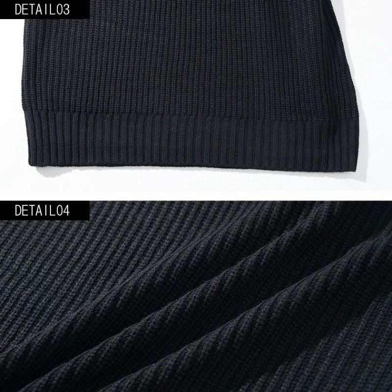 ネックラインはややボリュームのあるタートルネック仕様で、首元までしっかり暖かく、上品で落ち着いた大人の雰囲気を演出。