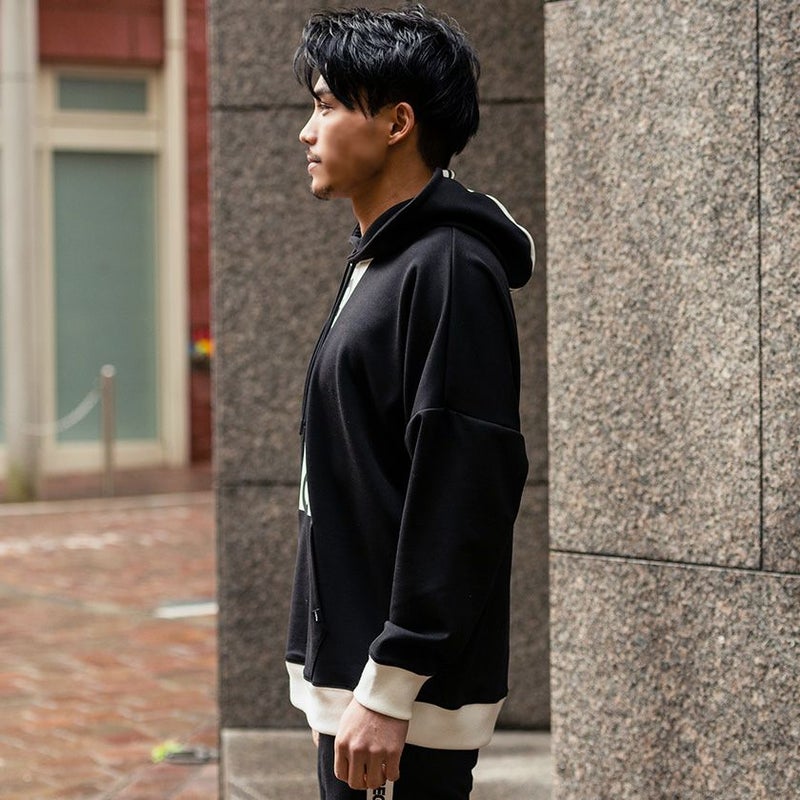 トレンドのスポーティなデザインのパーカーはロングシーズン着回せるので重宝するアイテムです。