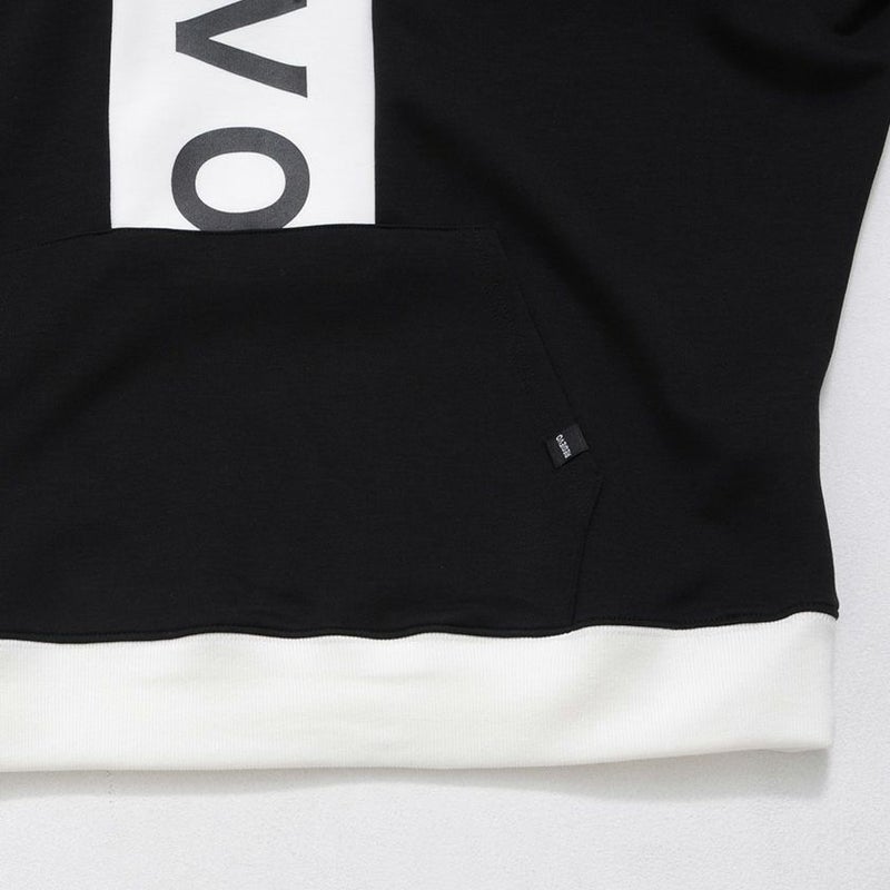 バックからフードにかけてと、フロント部分に大きなロゴプリントを施したインパクト抜群の長袖パーカー。