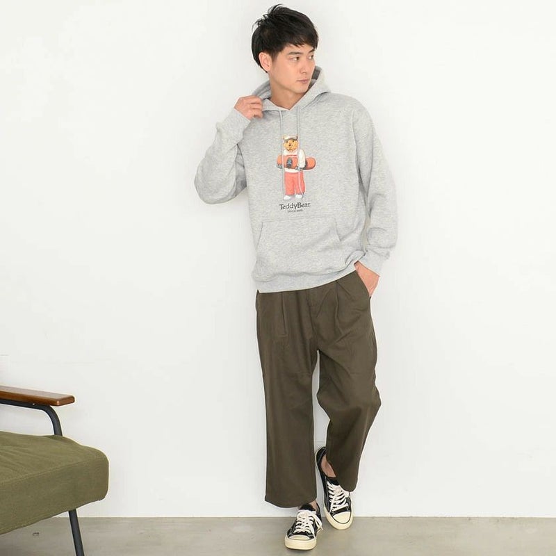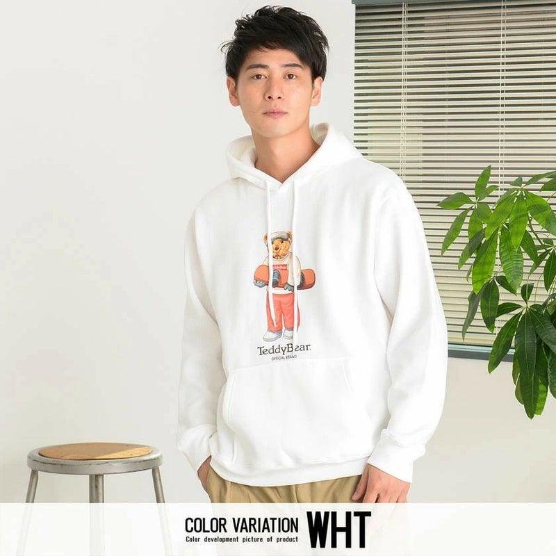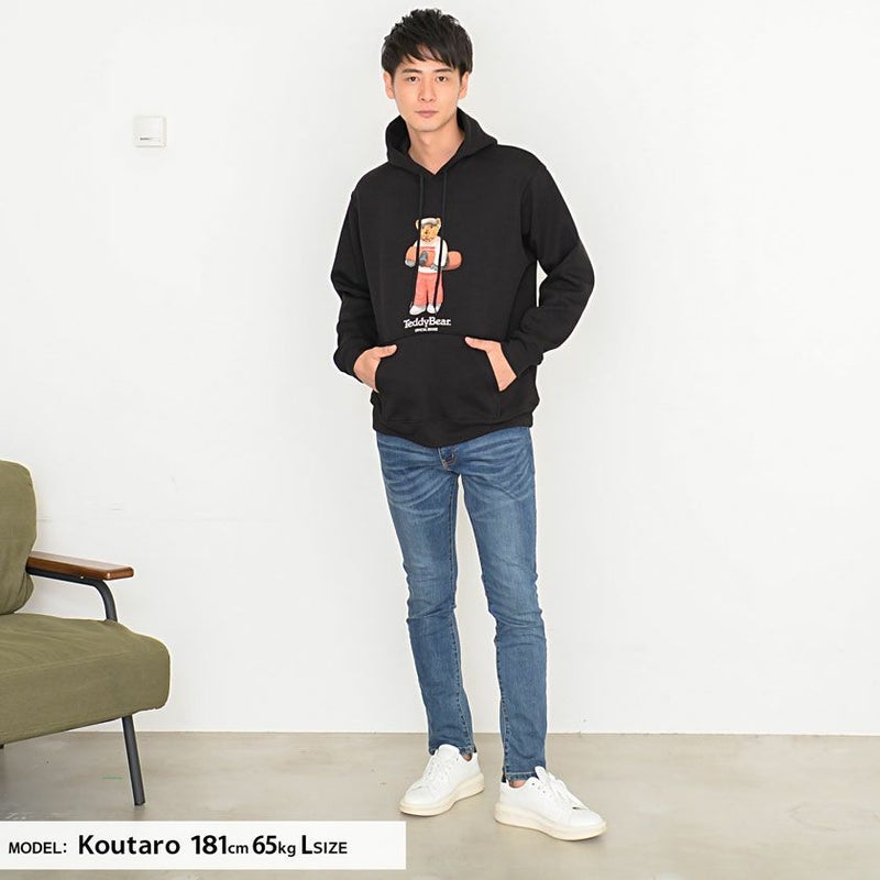 アメリカントラッドテイストの愛くるしいテディベアをプリントしたパーカー。