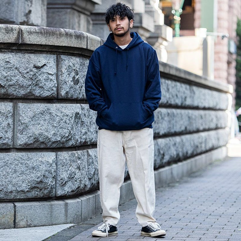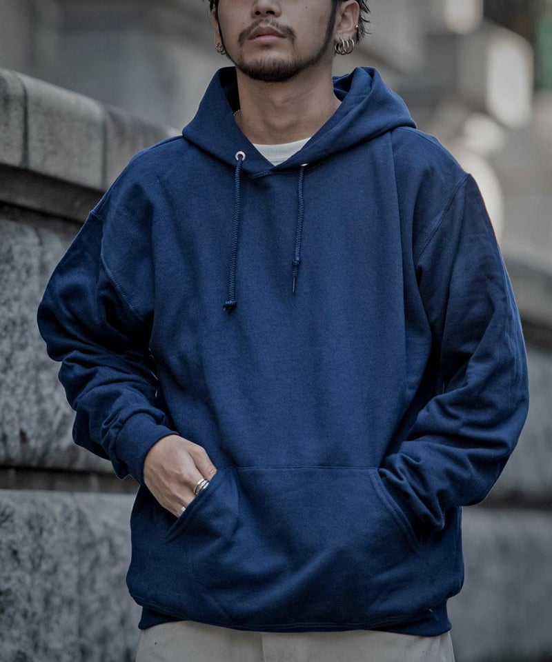 裏起毛を使った保温性の高さが特徴の定番パーカー。