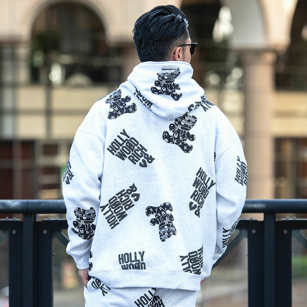 BITTER STORE(ビターストア)にHollywood rich.&【ハリウッドリッチドットアンド】裏起毛総柄プルオーバー長袖パーカーが入荷しました。