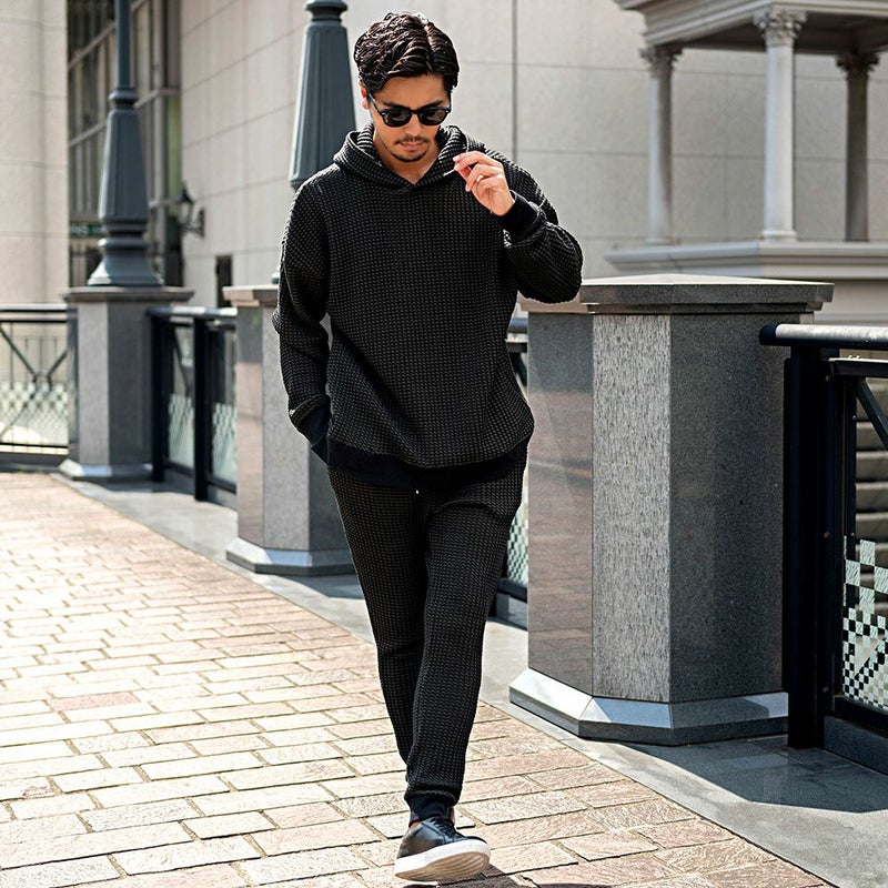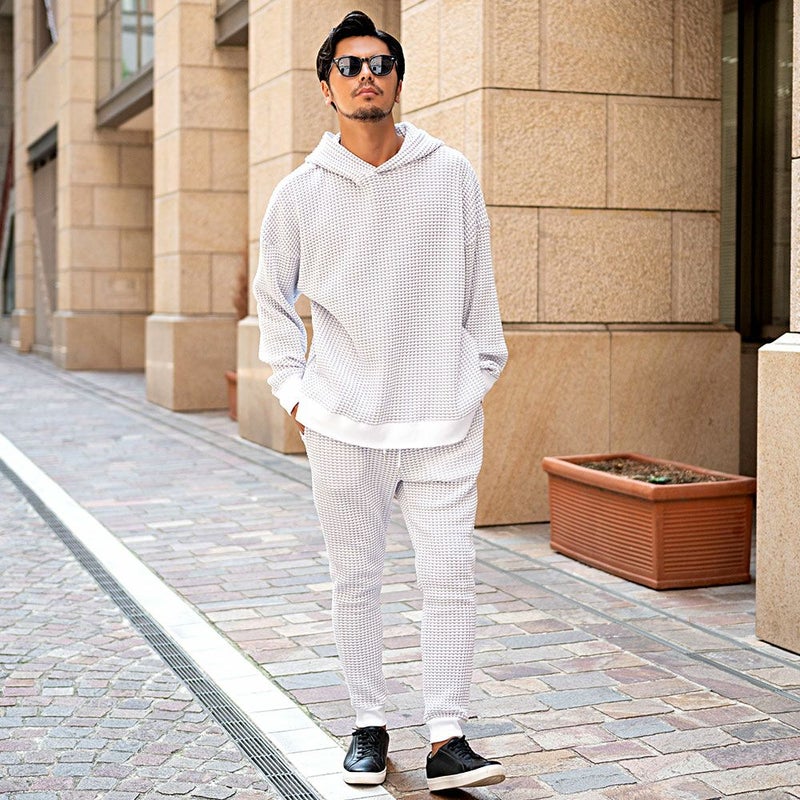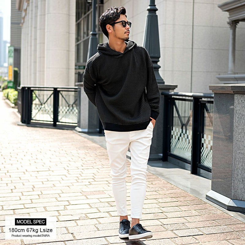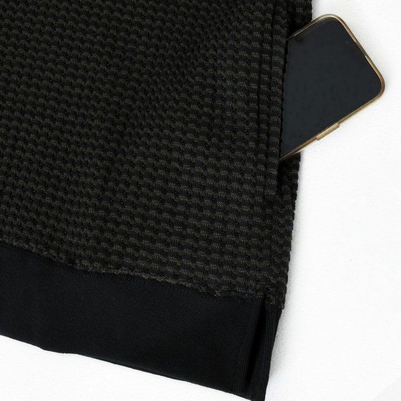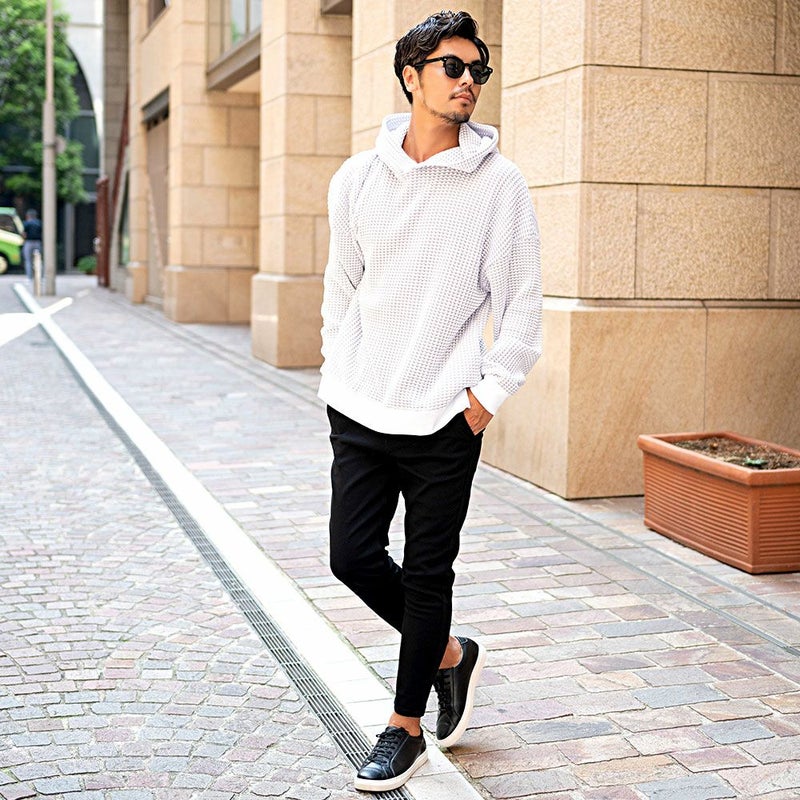 しっかりとした厚みと凹凸のある表面が特徴のワッフル生地を採用したプルオーバーパーカー。