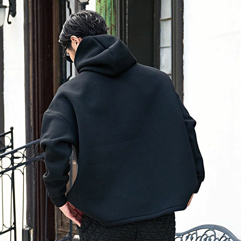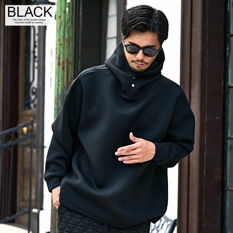 30代・40代・50代の大人ファッションにもマッチする、“シンプルなのに洒落て見える” ハイネックパーカーです。