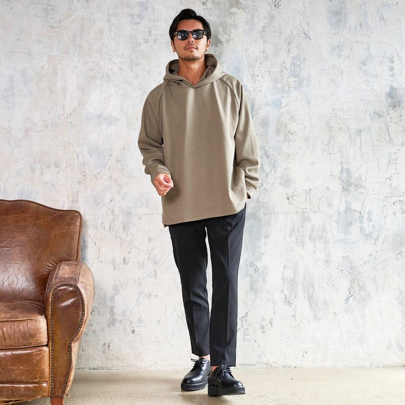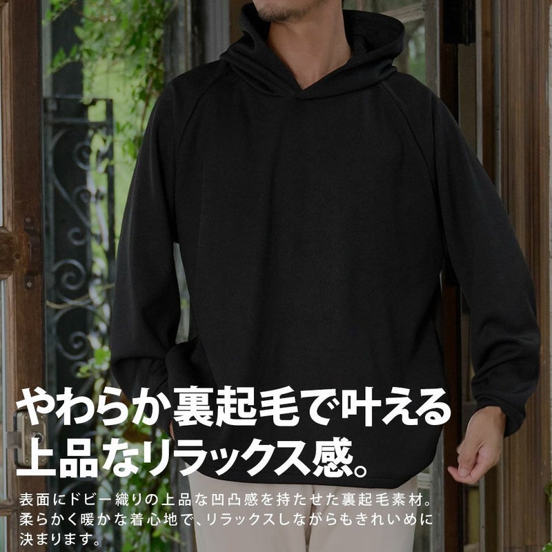 柔らかな裏起毛素材を使用したビッグシルエットパーカー。