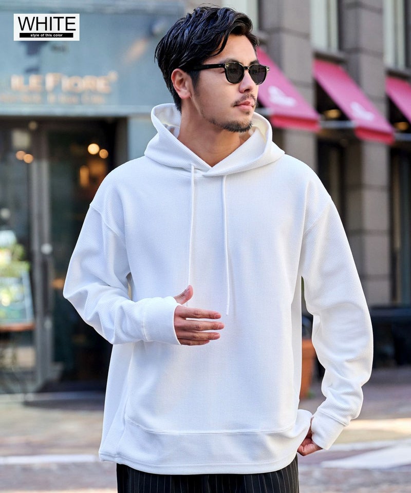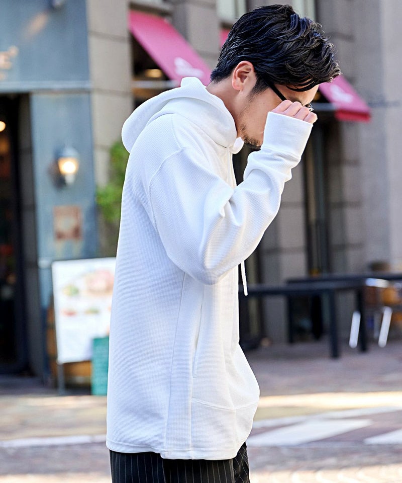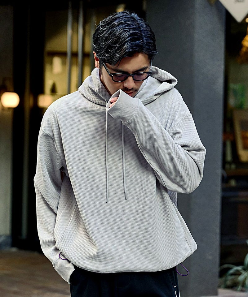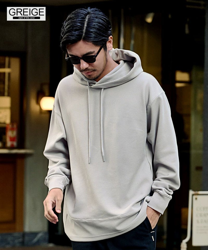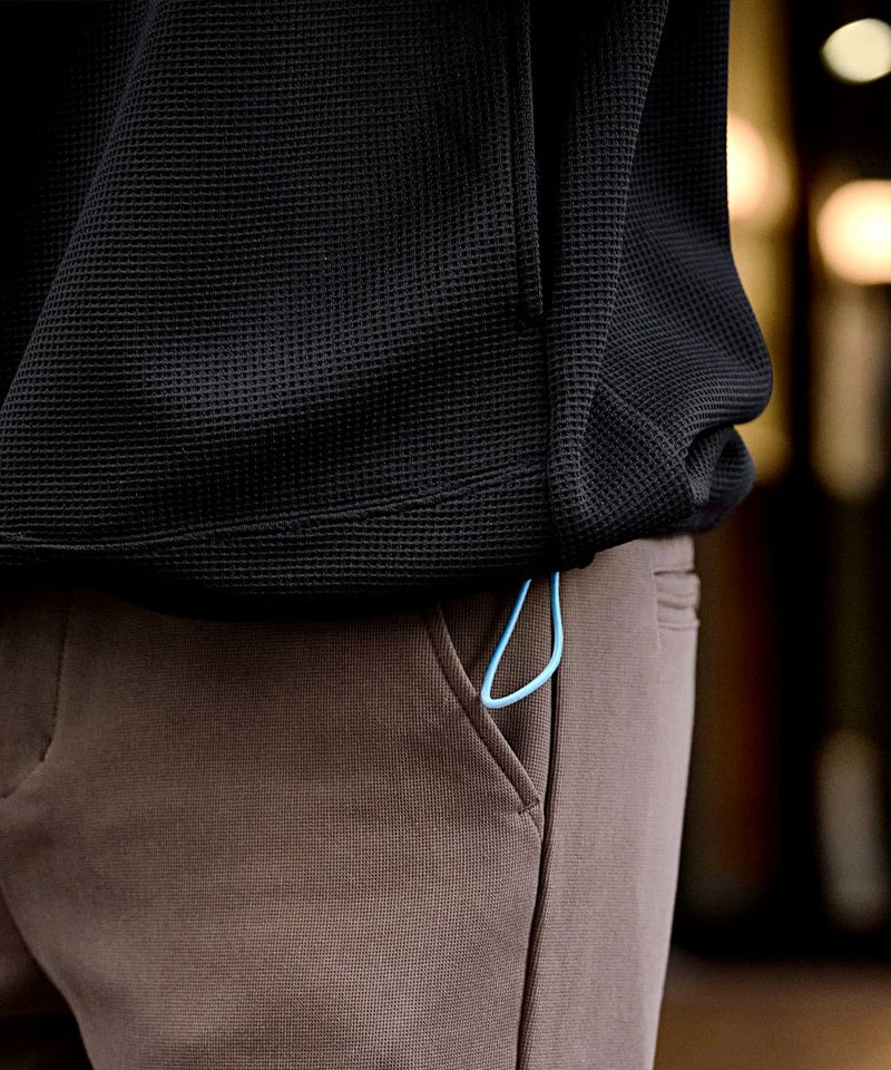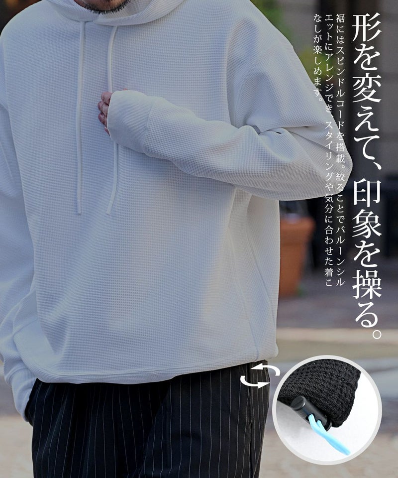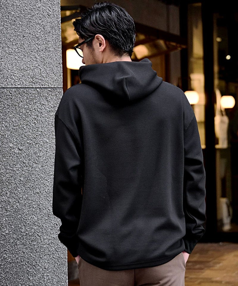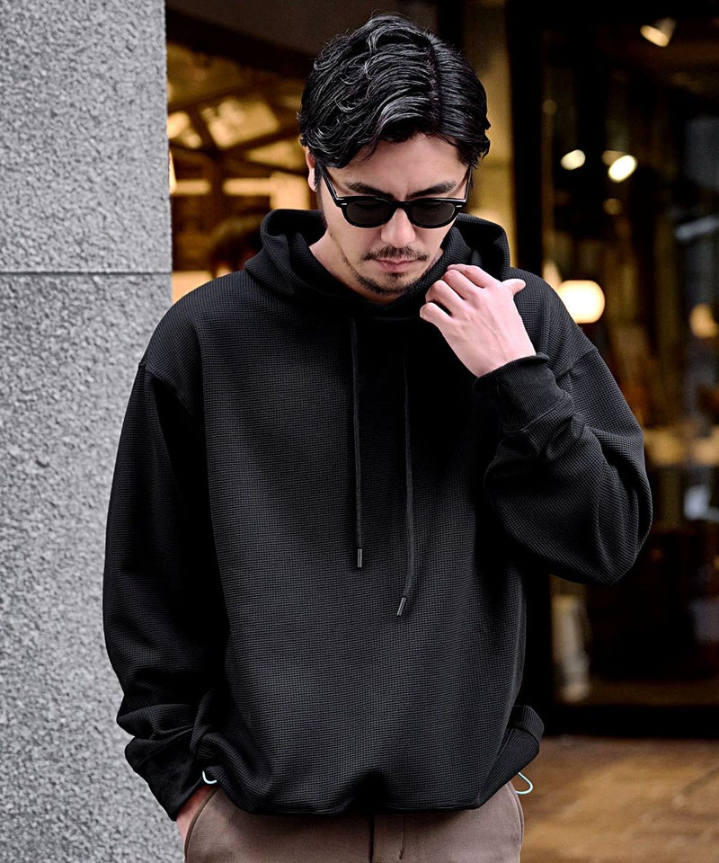 ワッフル状の凹凸が特徴のサーマル素材を使用。