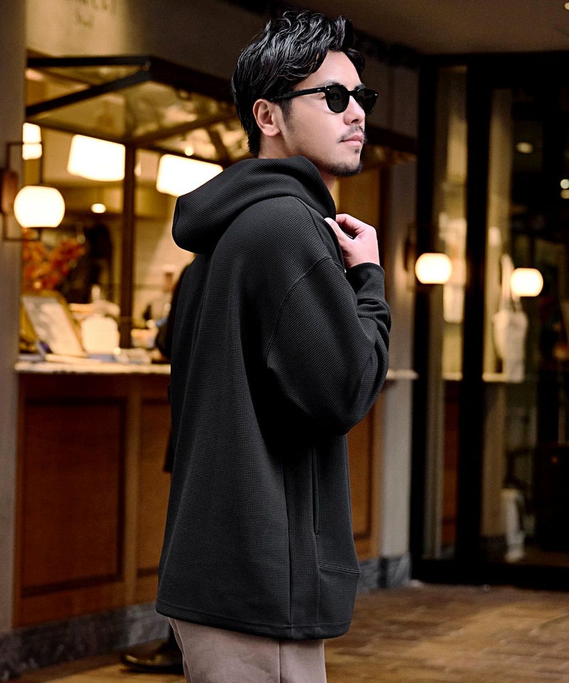 インナーとしても一枚着としても活躍する万能なプルオーバーパーカーです。