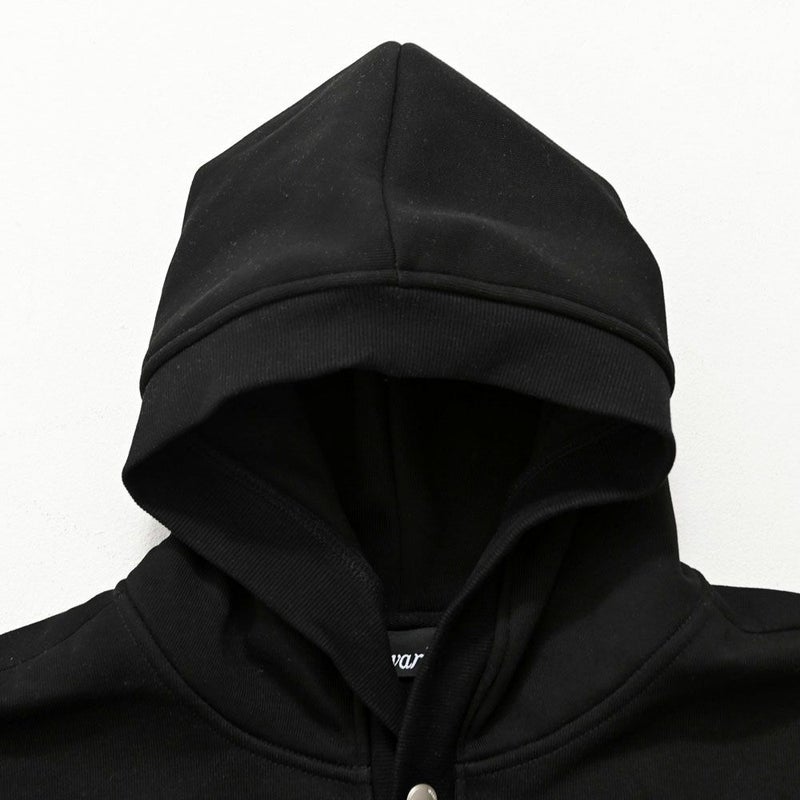ボリューム感のあるリブ仕様フードと相まって、シンプルながらも存在感のあるデザインに仕上げました。