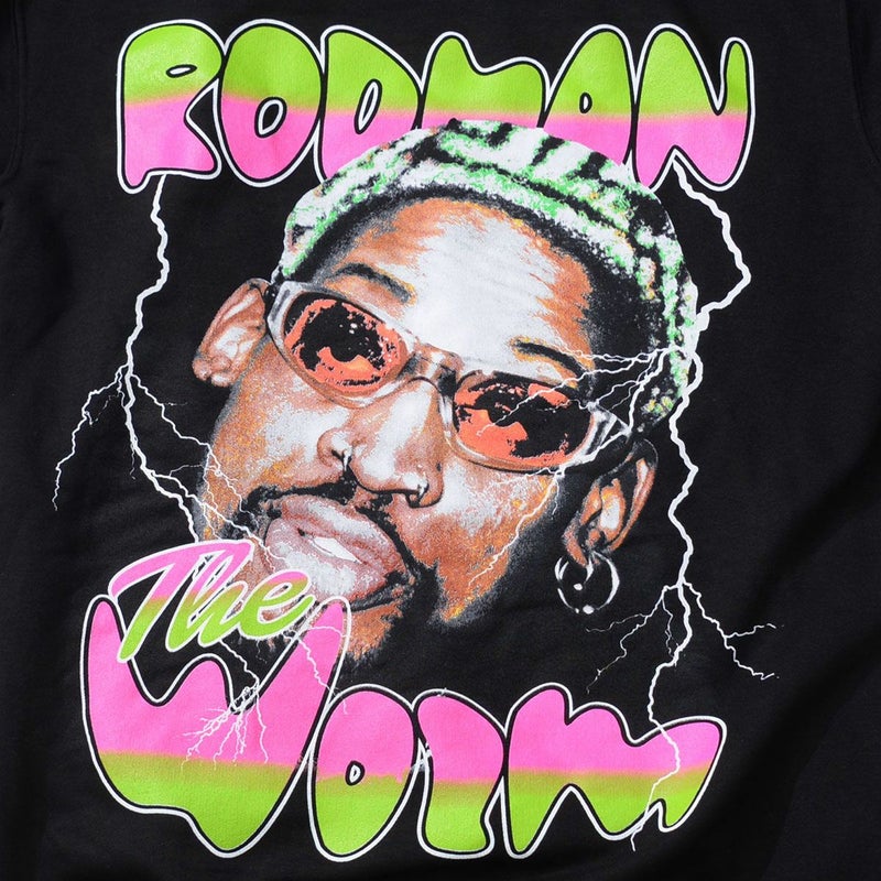 そんなどこか憎めないキャラクターで国民の人気を集めたロッドマンは、その独自の感性を全面に出したスタイリングやカラーチョイスなど、ファッションアイコンとしても評価され、ロッドマンがプリントされたTシャツをはじめとしたオフィシャルグッズは90年代から現在に至るまで留まることなく人気を博し続ける。