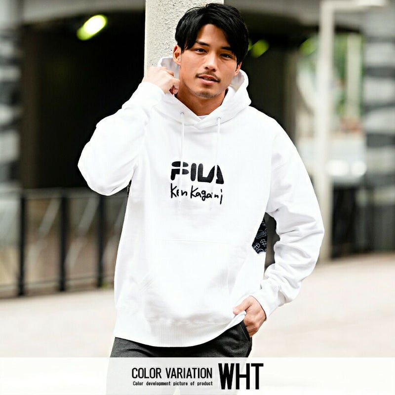 フロントにはFILAオリジナルロゴプリントとken kagamiの刺繍をデザイン。