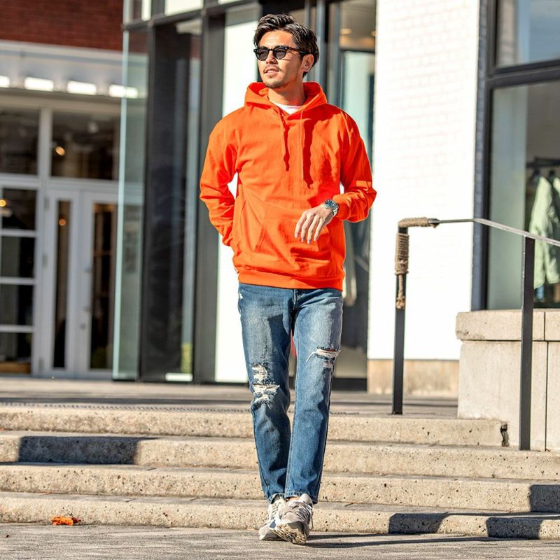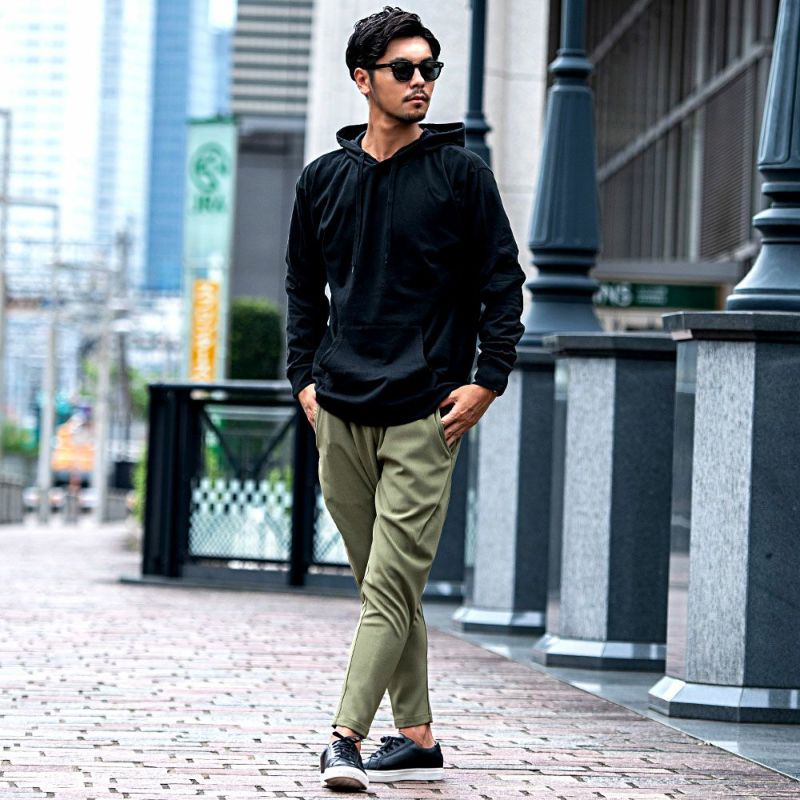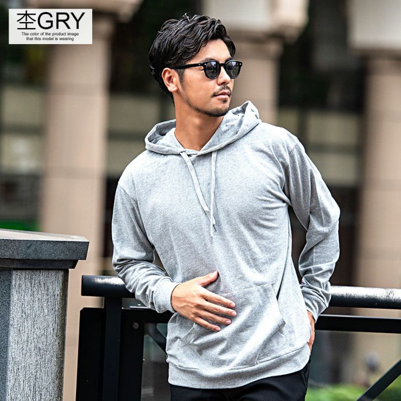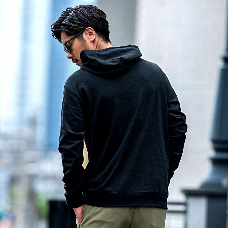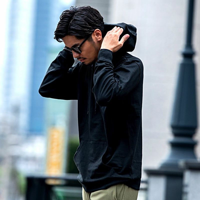 柔らかく快適な着心地の天竺素材を使用したプルオーバーパーカー。