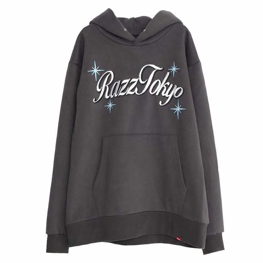 RAZZIS Star logo embroidered long sleeve brushed back hoodie