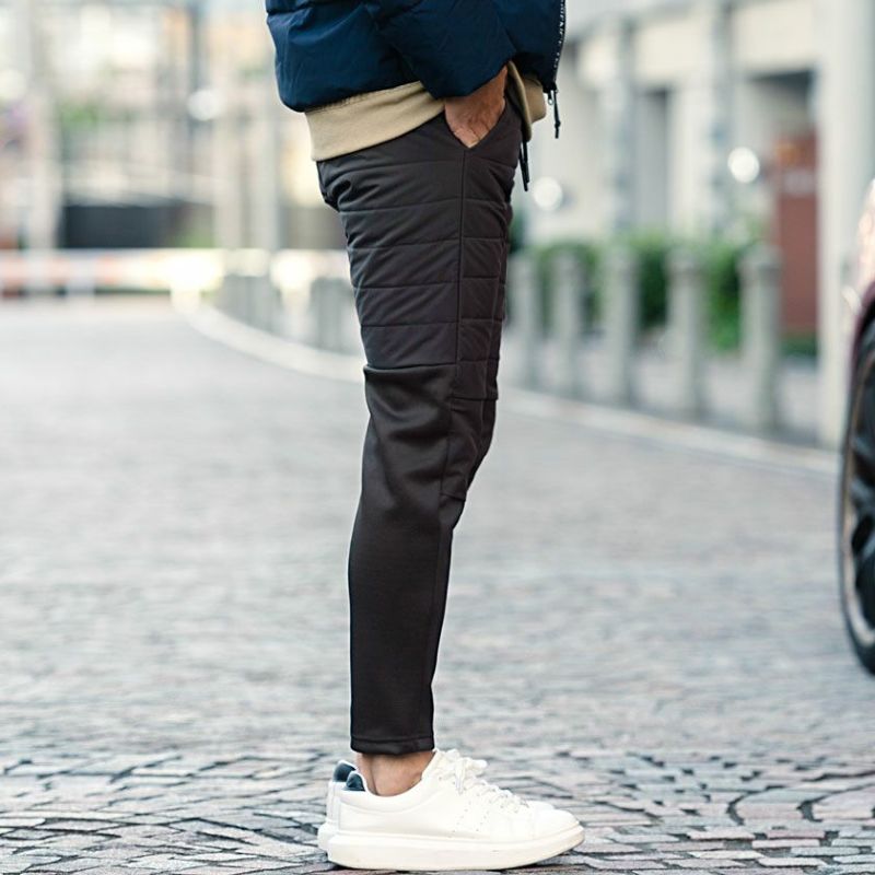 腰から腿周りには中綿素材、膝下からは裏起毛素材を使用し動きやすさを保ちながら暖かな穿き心地を実現。