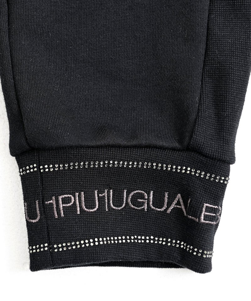 裾部分にはロゴ刺繍とラインストーンを施し、さりげなく存在感のあるデザインに。