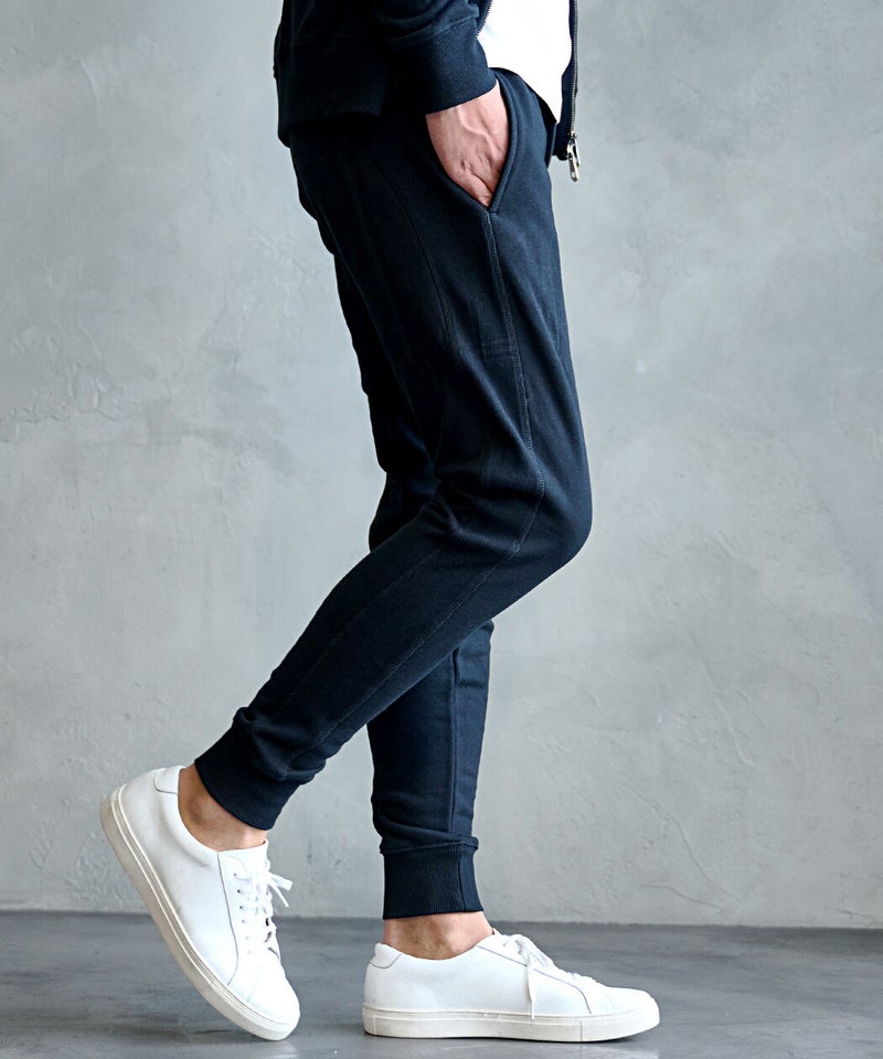 シルエットは脚のラインを美しく見せるスリムジョガーシルエット。