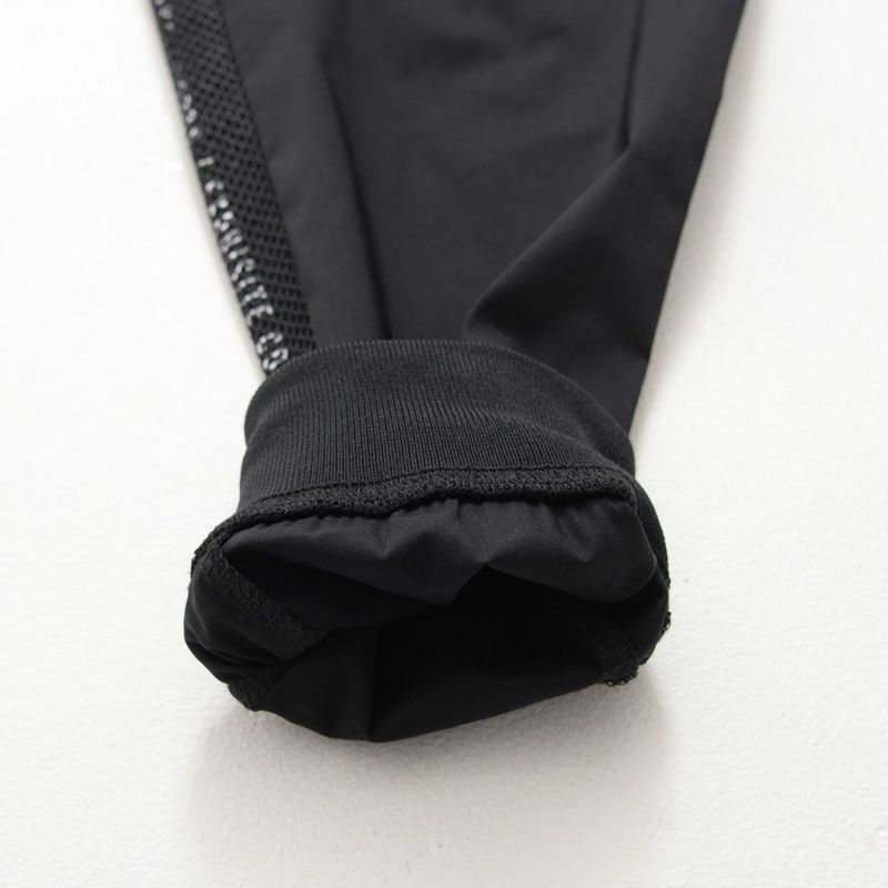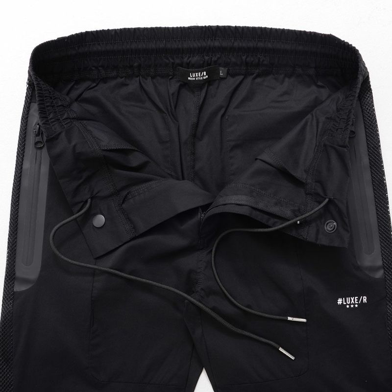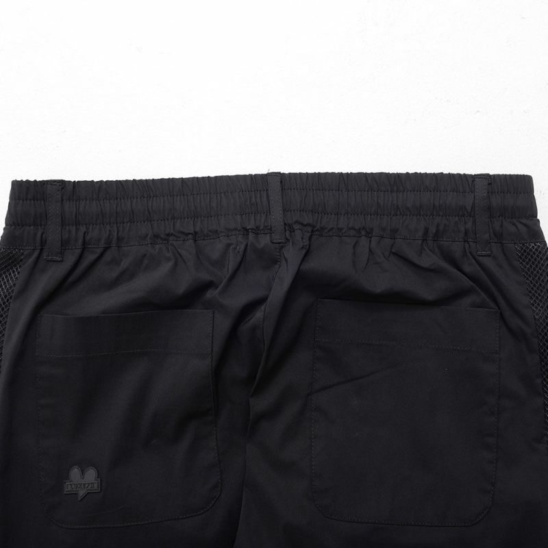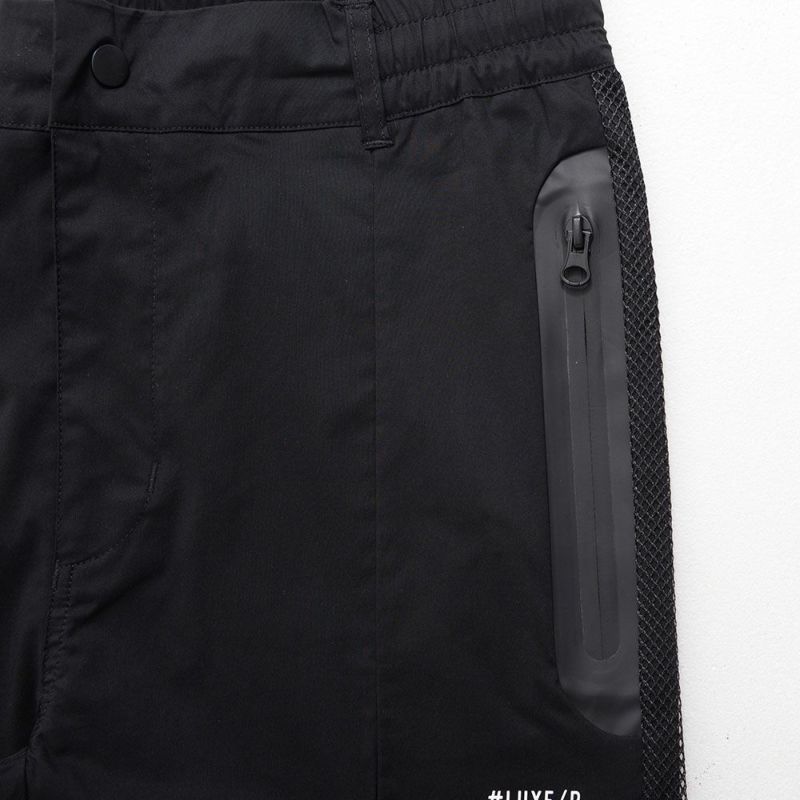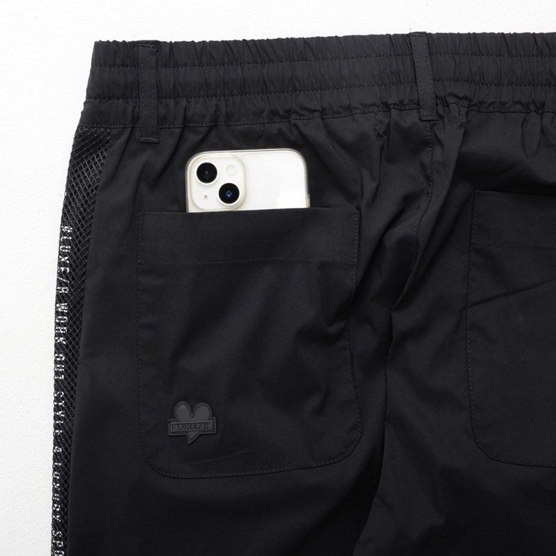 両サイドのメッシュ部分にはロゴテープ、さらに止水ジップ付きのポケットを配置。