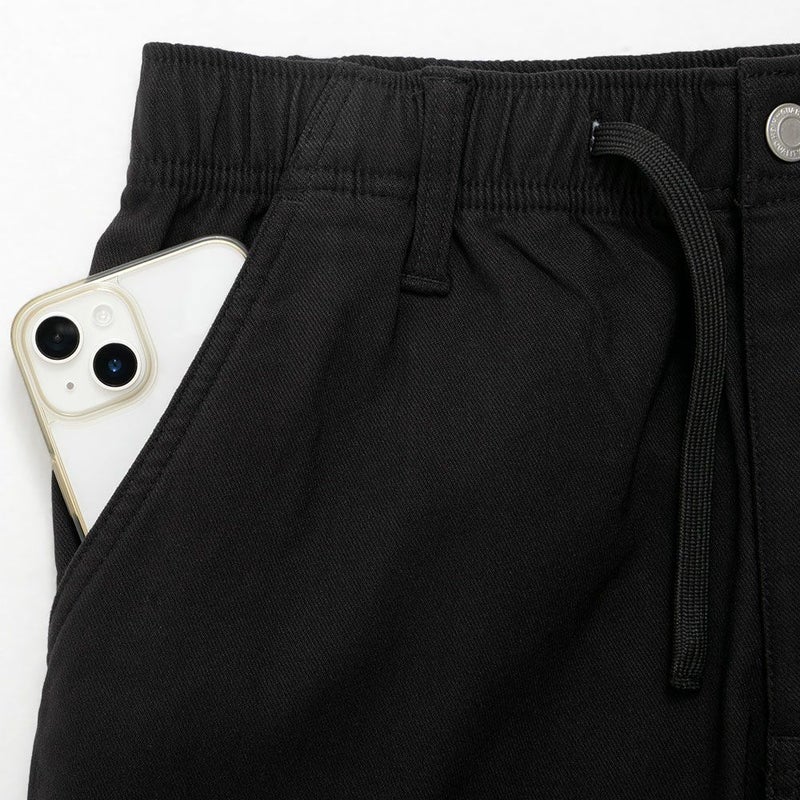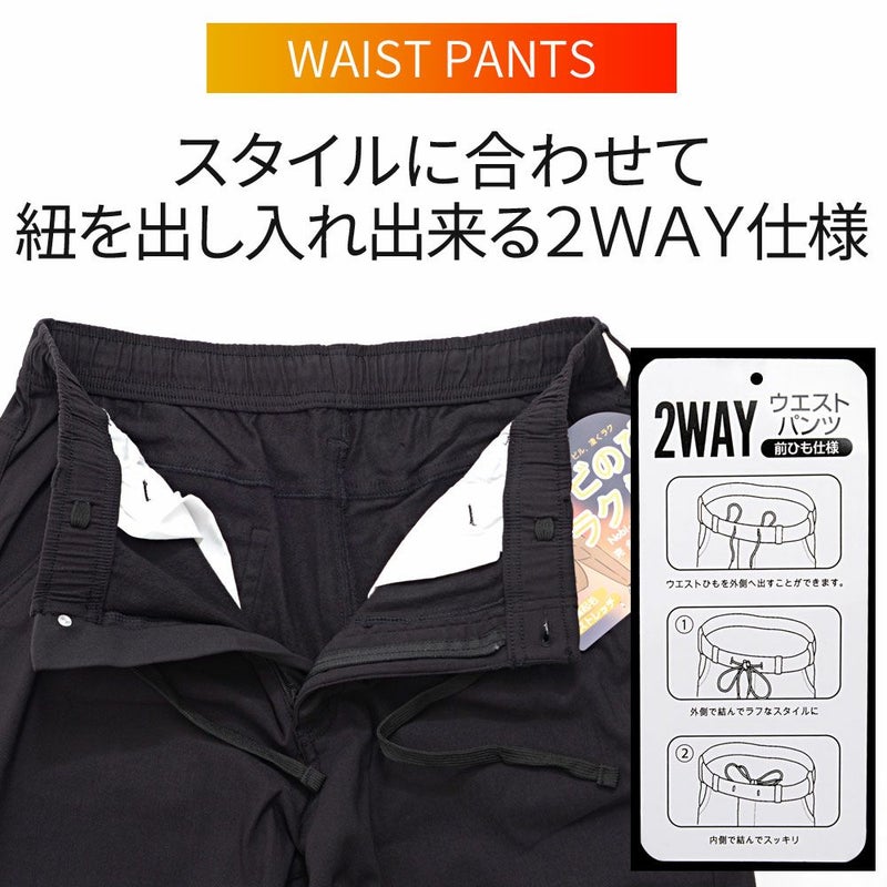 ウエスト部分は紐を出し入れできる2WAY仕様になっており、ラクな穿き心地とスマートな印象を両立。