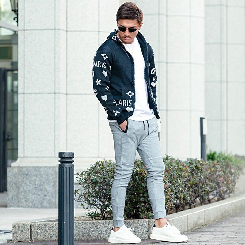 細身なシルエットで裾をリブにすることでスタイリッシュな着こなし演出してくれます。