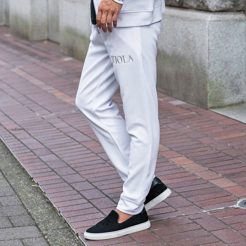 上品な立体感が魅力のフクレジャガード生地を使用したジョガーパンツ。
